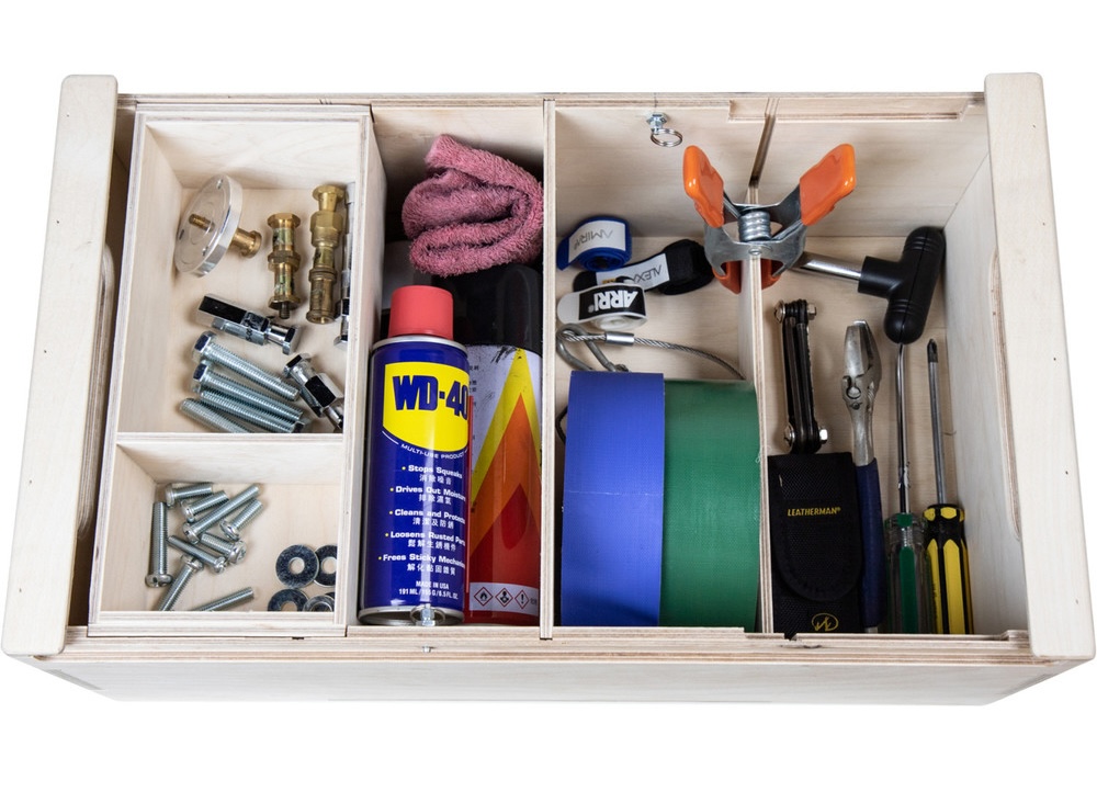 Interior listo para el equipo: Cuenta con tres divisores ajustables y una bandeja extraíble para que puedas mantener cables, abrazaderas y herramientas perfectamente organizados y a mano.