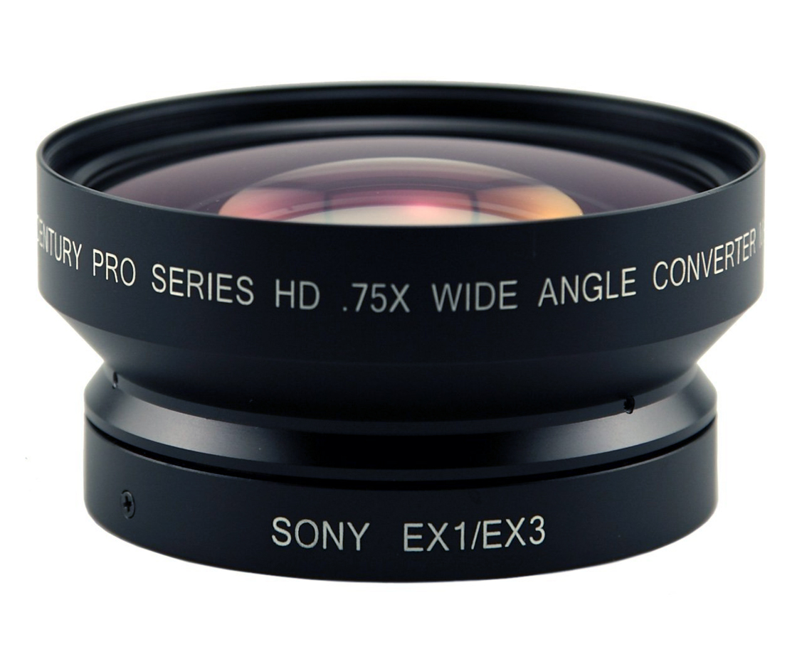 Conversor gran angular HD 0.75x Century para cámaras XDCAM Sony PMW-EX1 y EX3, mejora la captura de amplios escenarios con alta definición.
