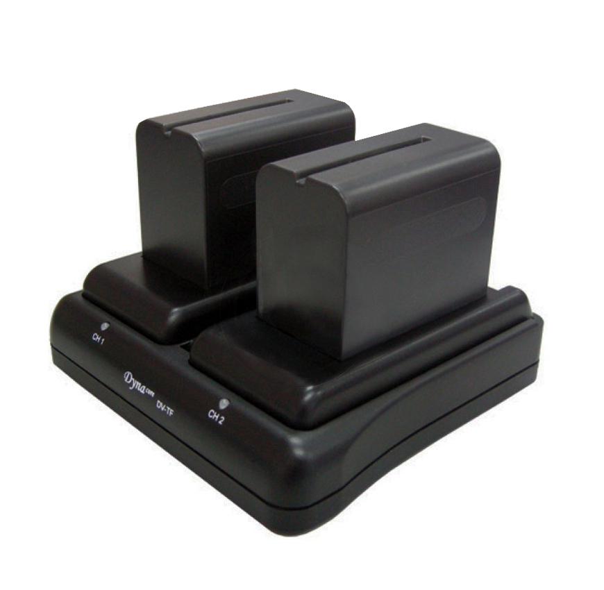 Cargador doble DYNACORE DV-TU compatible con baterías Sony BP-U, DT-S8 y DS-U65, ideal para cargas rápidas y eficientes.