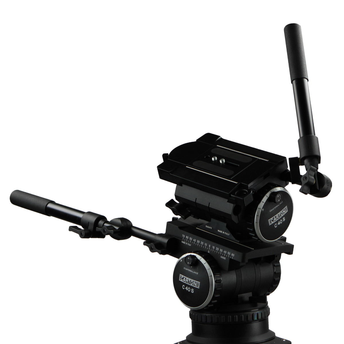 Cabezal fluido CARTONI C 40 S DUTCH HEAD: Soporta 25 Kg, 360º de paneo, ±60º de TILT, ideal para movimientos laterales de cámara.