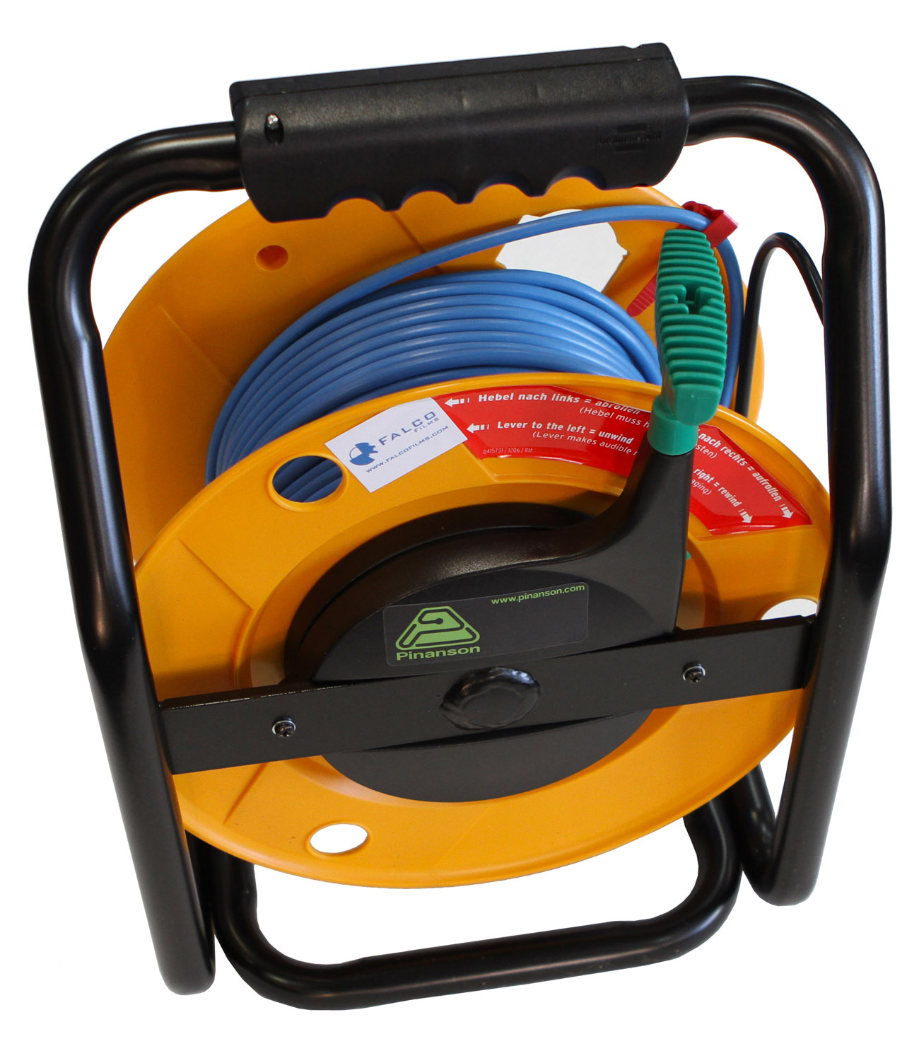 Decámetro Tangerine Leather: cinta métrica de fibra de vidrio en carcasa de piel cosida a mano, ideal para fotografía cinematográfica. Colores: negro, marrón y granate.