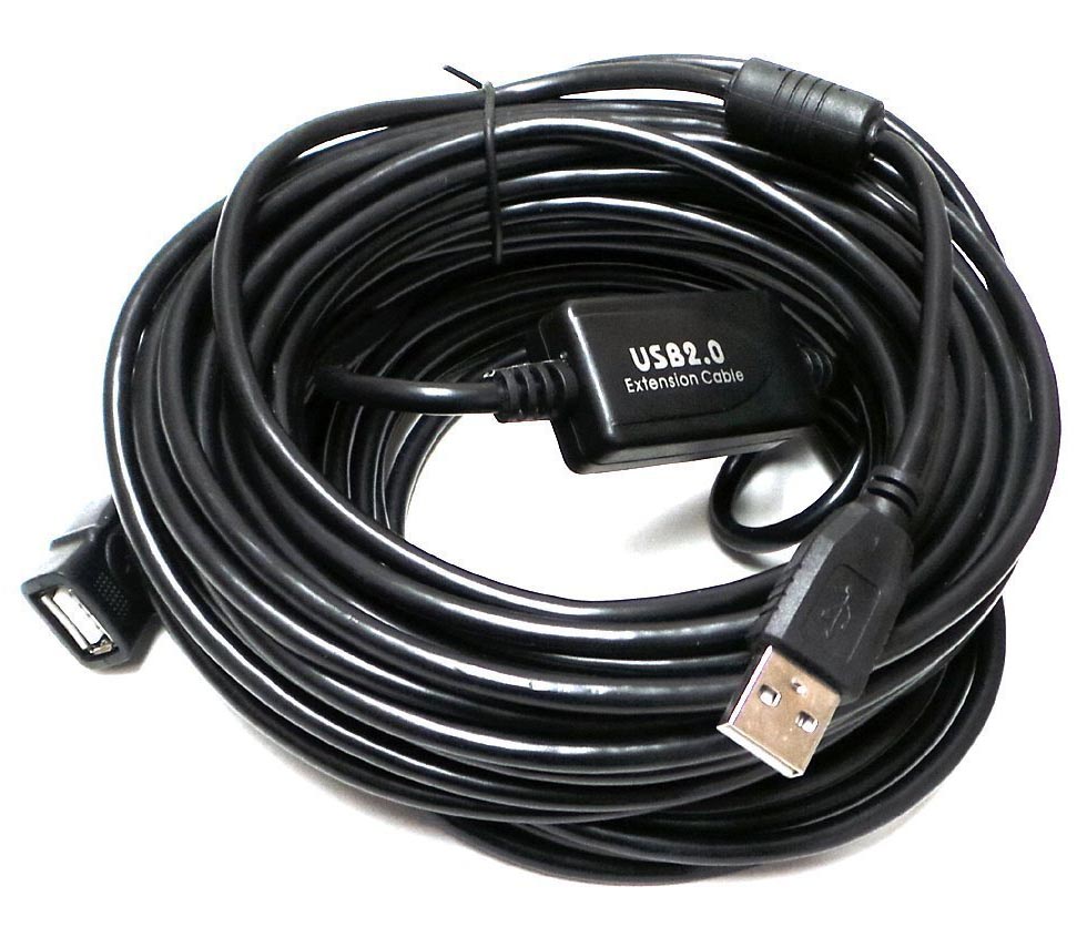 Cable USB 2.0 de 15 metros con amplificación de señal, ideal para extender la conexión de tus dispositivos sin pérdida de calidad.