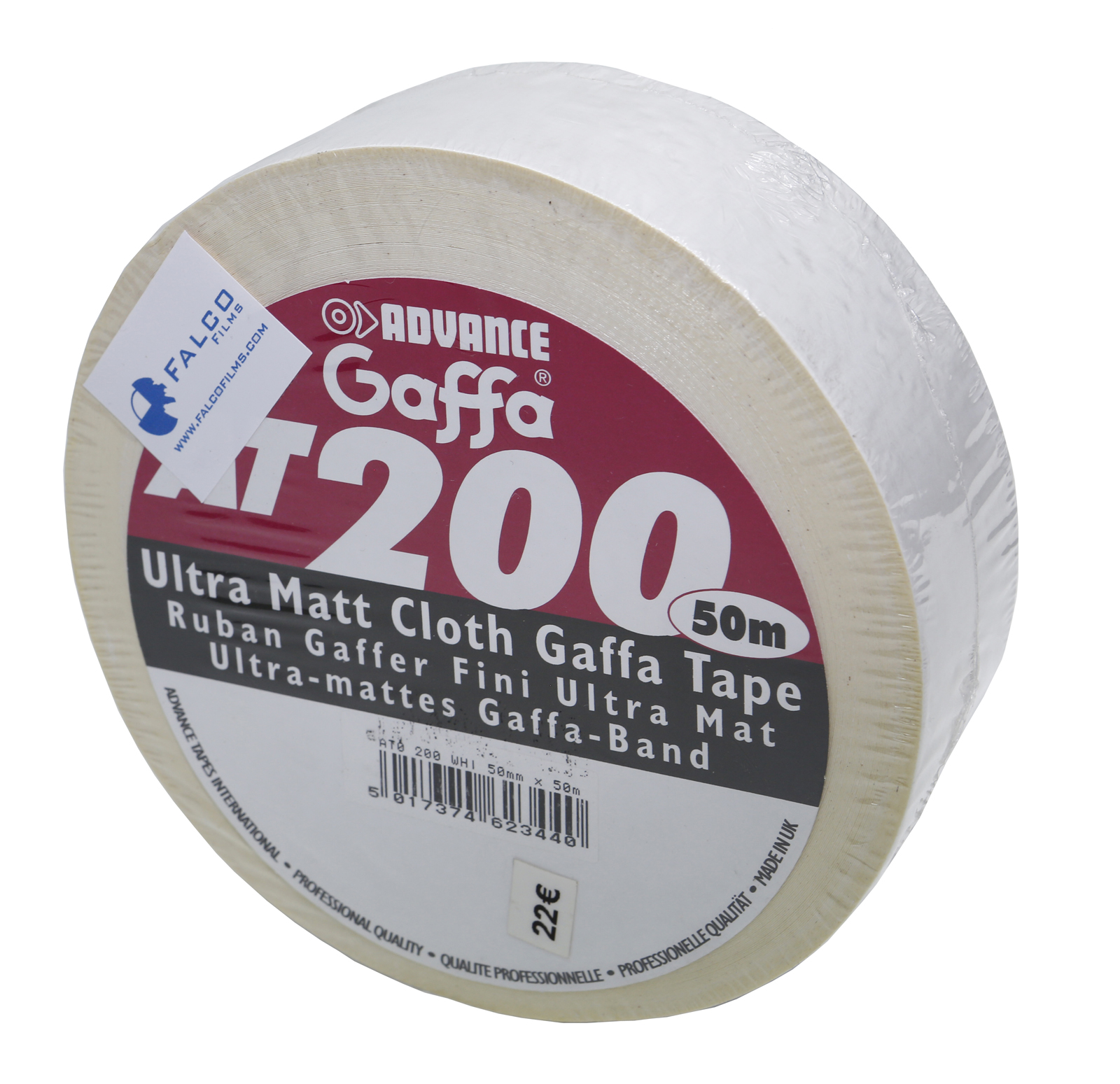 Cinta adhesiva blanca mate GAFFA, 5cm x 50m, modelo ADVANCE AT200 Ultra Matt Cloth, perfecta para usos diversos con acabado profesional.