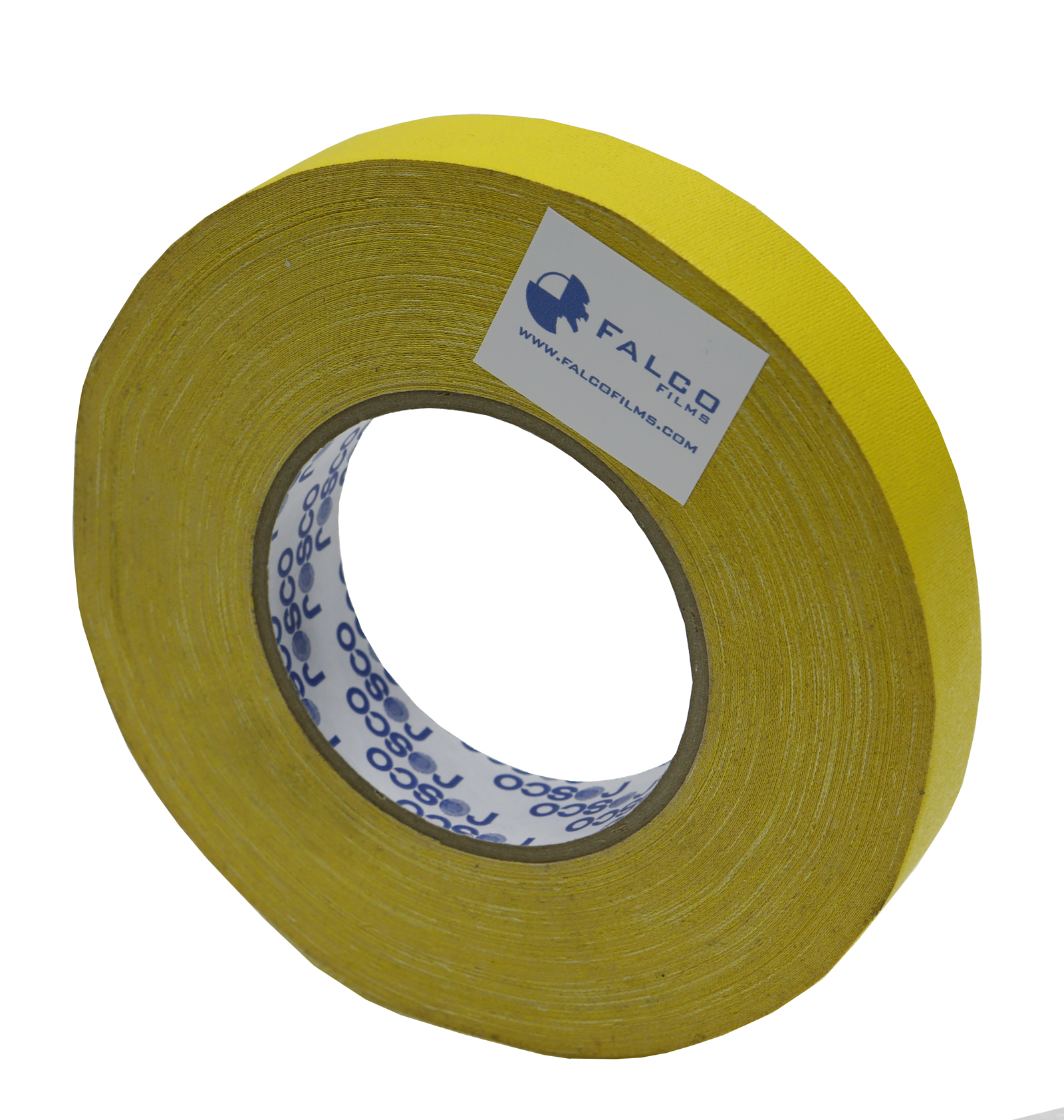 Cinta adhesiva amarilla mate de 2.5cm x 50m, marca ROSCO, ideal para proyectos cinematográficos y técnicos.