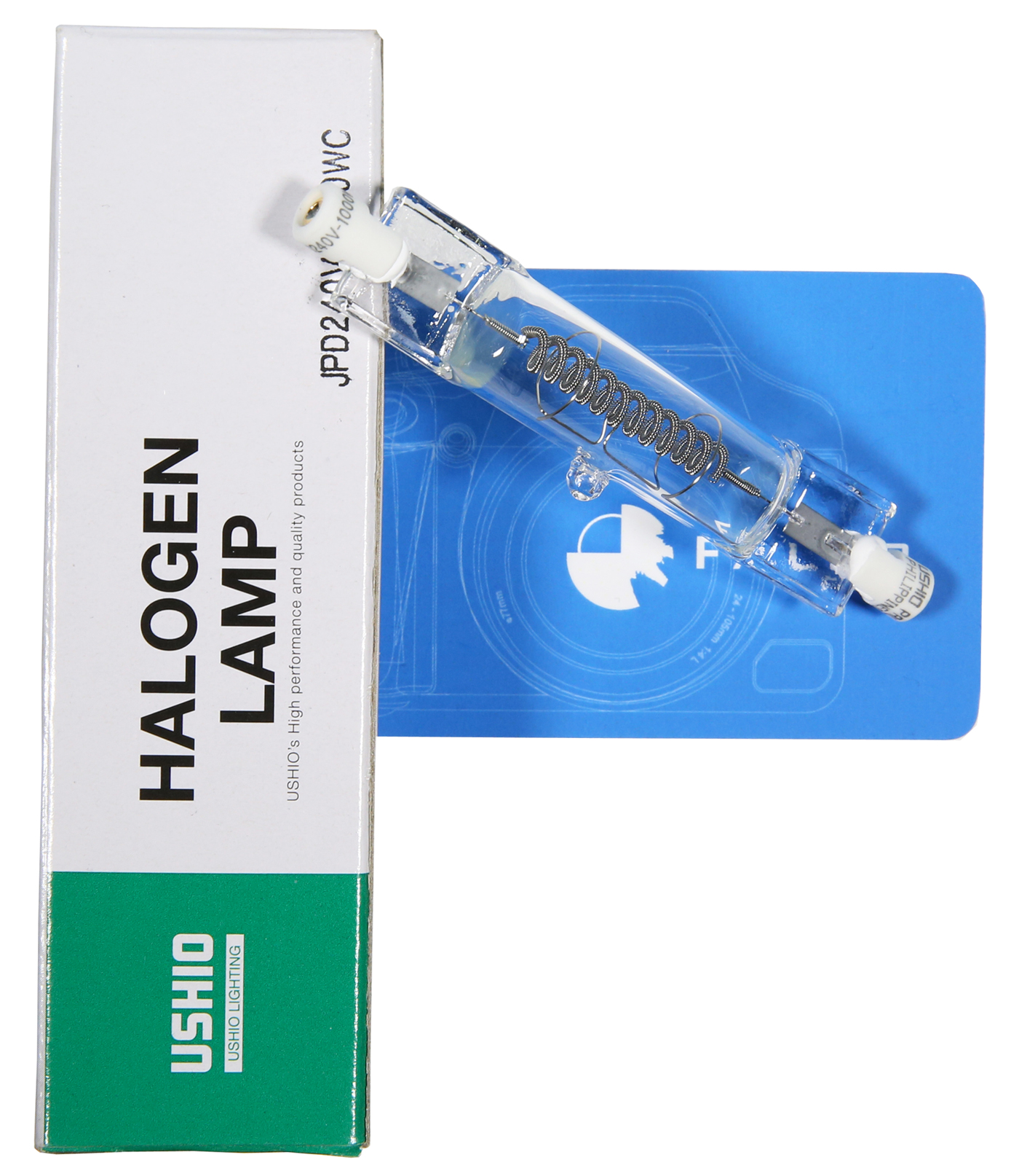 Lámpara FRESNEL 1000W USHIO JPD240V, halógena con temperatura de color de 3200K y vida útil de 150 horas, ideal para iluminación profesional.
