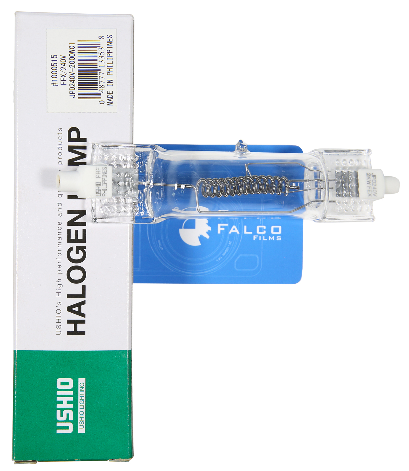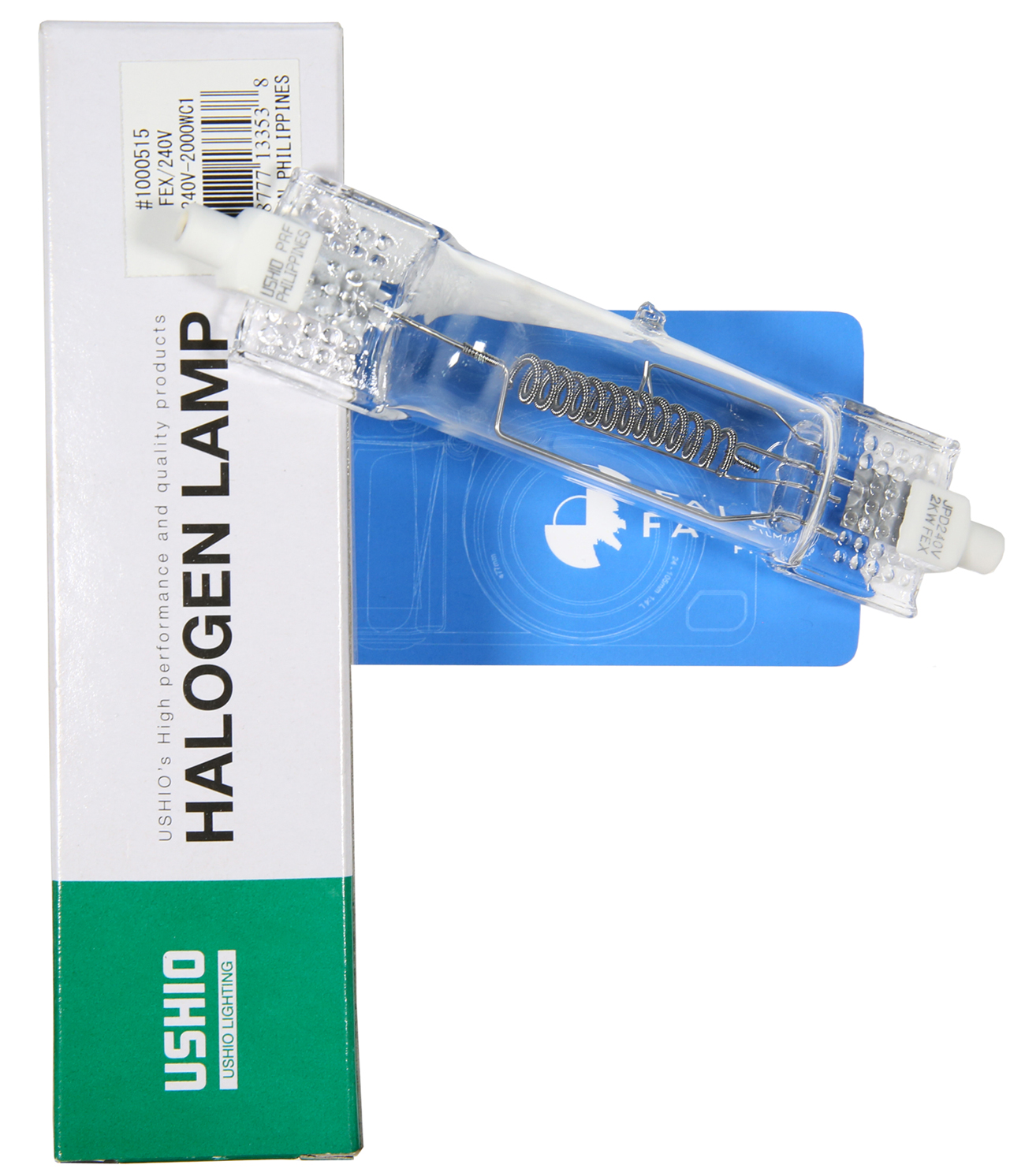 Lámpara Fresnel halógena 2000W USHIO, 3200K, 150 horas de vida útil, ideal para iluminación profesional y de alta calidad.