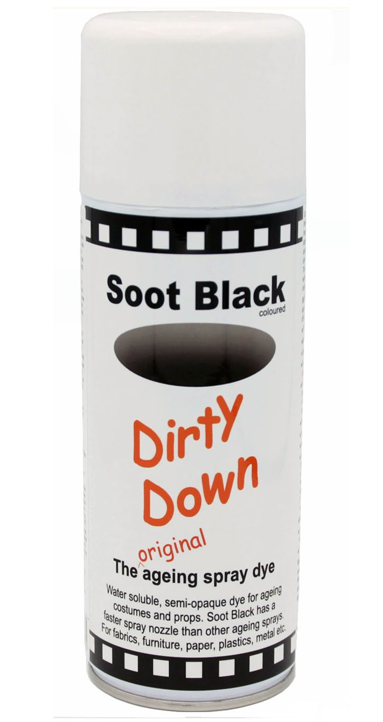 Una pulverización rápida deposita una fina capa de tinte de color semiopaco que hace que las superficies limpias parezcan de color negro carbón "hollín", sucias y viejas, o haber "envejecido".