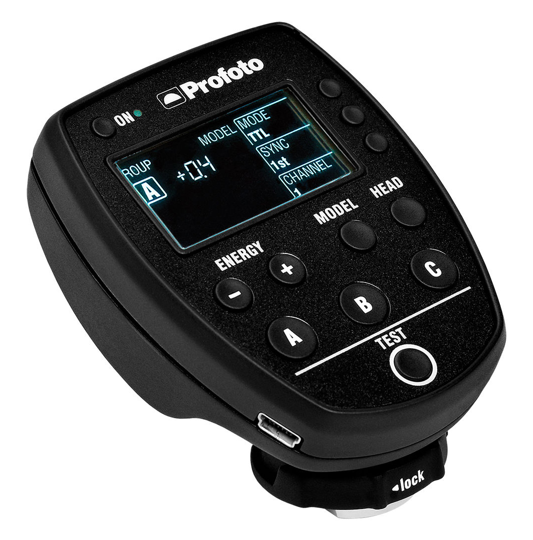 Sincronizador PROFOTO AIR REMOTE TTL-C para cámaras Canon: control automático TTL, mejoras híbridas manuales, rango operativo de 300m, frecuencia 2.4GHz y actualizaciones vía USB.