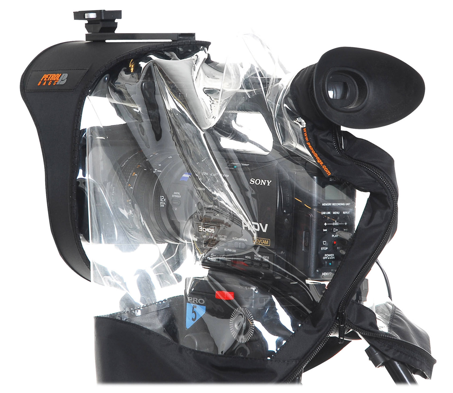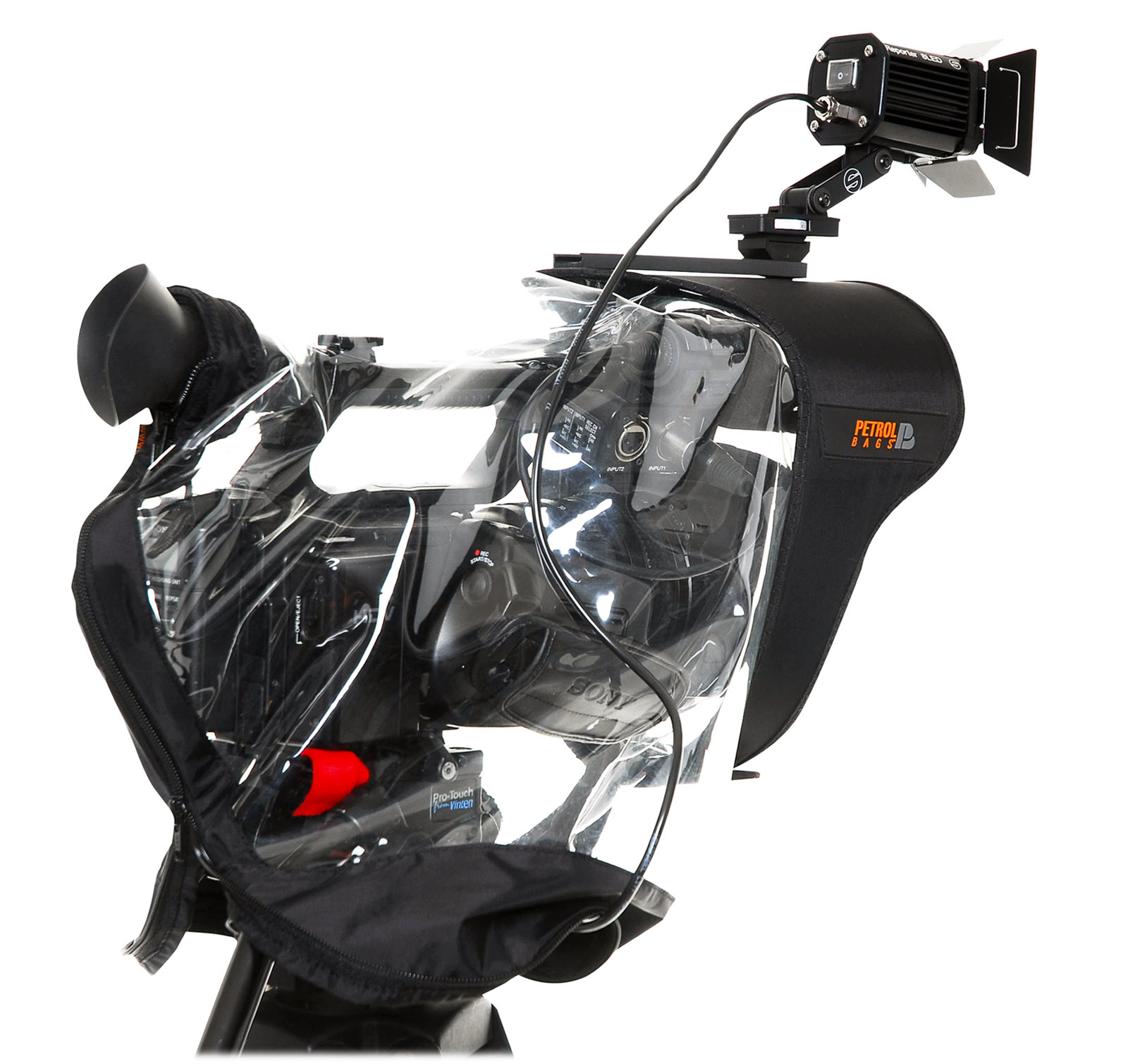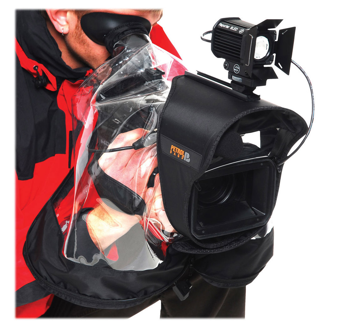 Funda de lluvia PETROL PR410 para cámaras medianas, ligera, 50 cm de largo, color negro y transparente, resistente al agua, peso de solo 500 gramos.