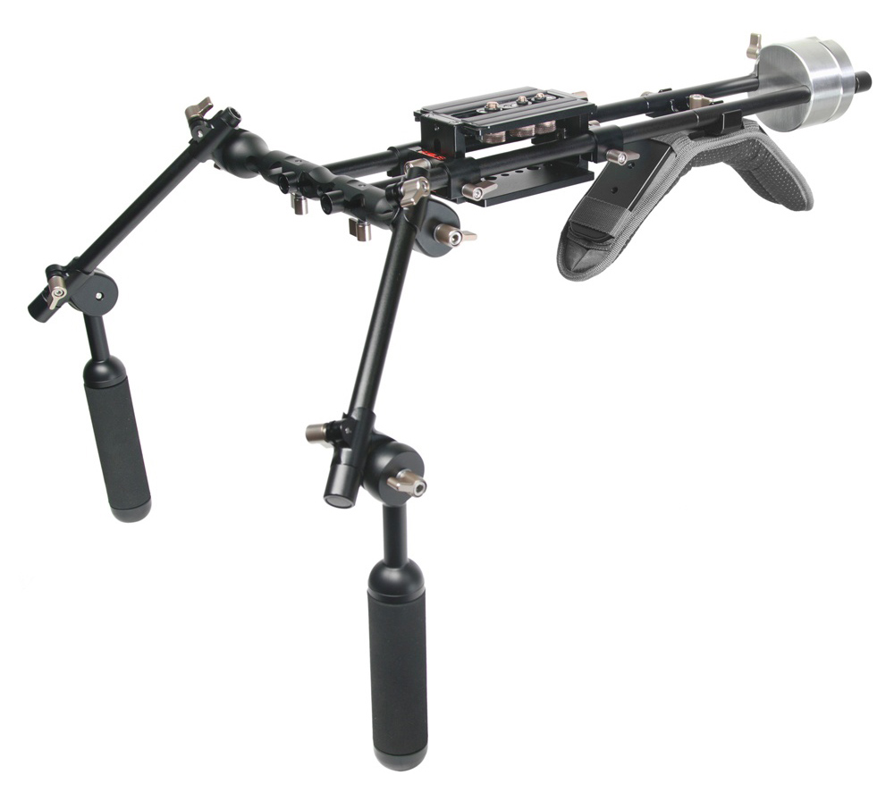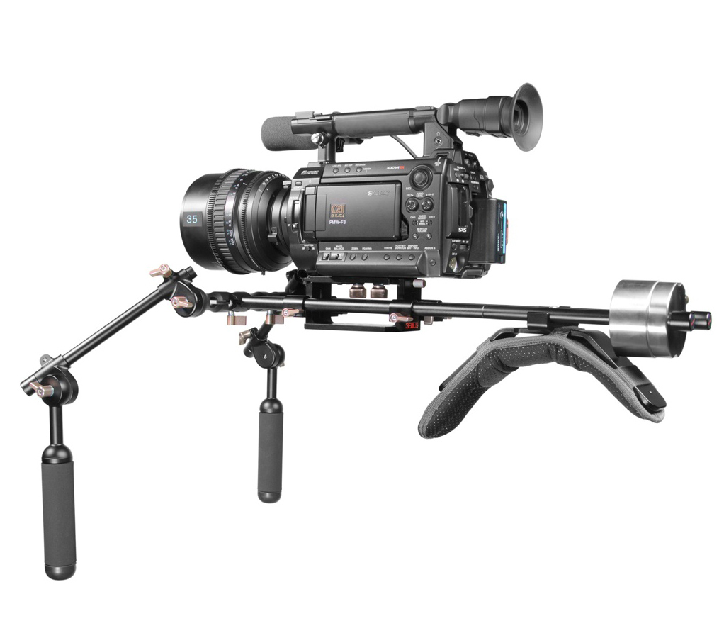 Kit de soporte de hombro para cámaras medianas como SONY F3, CANON EOS C300/C500 y PANASONIC AF100, con sistema MO-BAR.