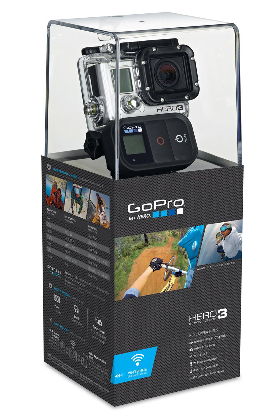 La HD HERO3 es fácil de instalar y resistente al agua hasta 60 metros.