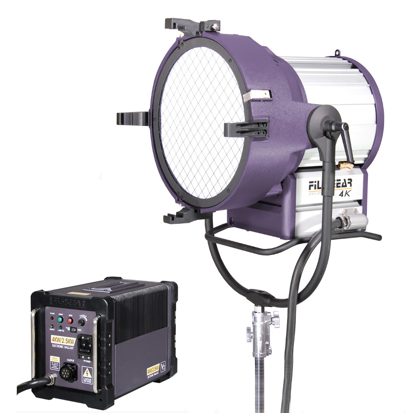 HMI PAR 4000W de Filmgear: luz de día potente con ballast incluido, visor HMI, juego de 5 lentes, maleta y pie de foco Avenger-Manfrotto.