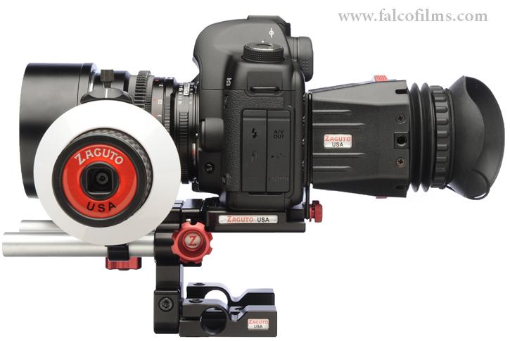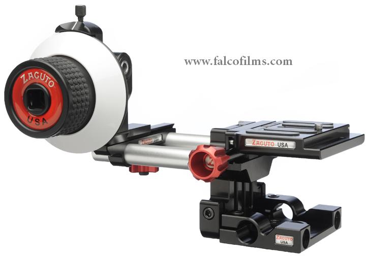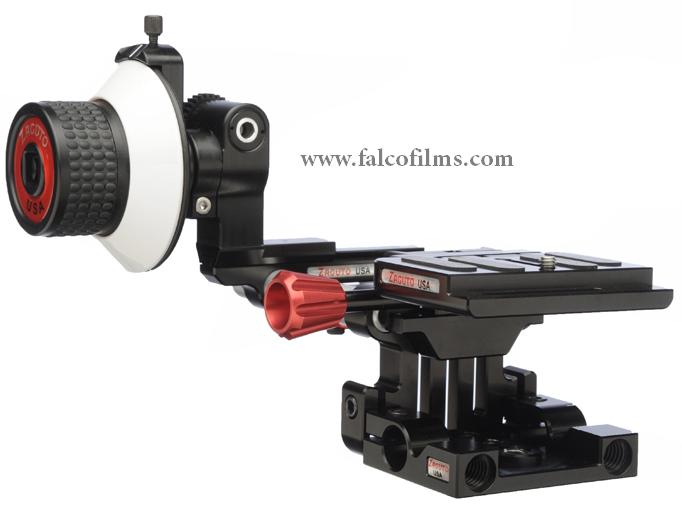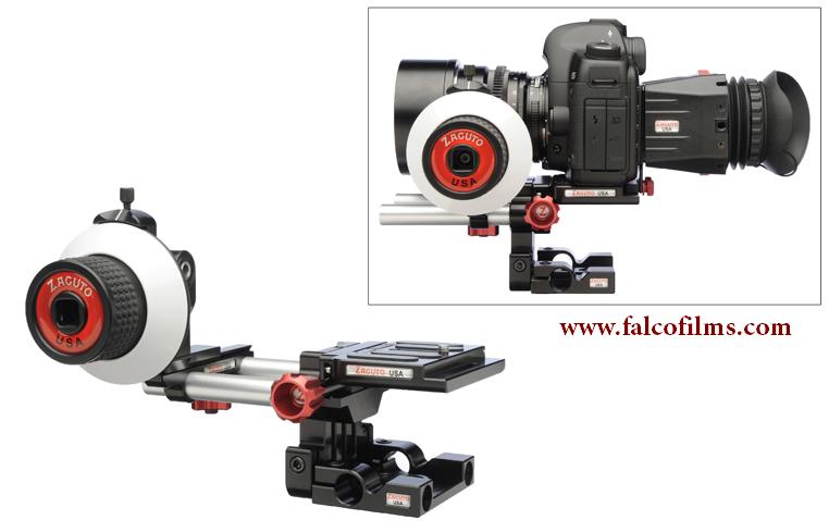 Kit Z-DSA: Sistema ajustable para cámaras DSLR, incluye mando de foco, placa quick release y anillo de enfoque universal para montaje en trípode o rig de hombro.