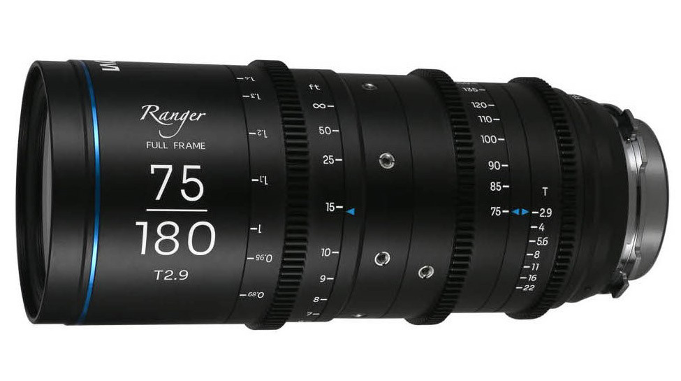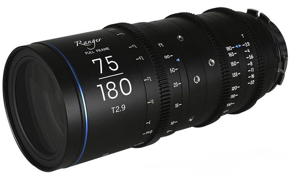 Lente cinematográfico LAOWA RANGER 75-180mm T2.9 con monturas EF, PL, E y RF, bokeh suave, enfoque preciso y rotación de zoom versátil.