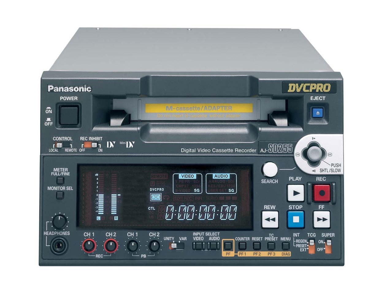 La Panasonic AJ-SD255 es un magneto lector/grabador DVCPRO25 compatible con Mini DV, DV y DVCAM en modo de solo lectura.