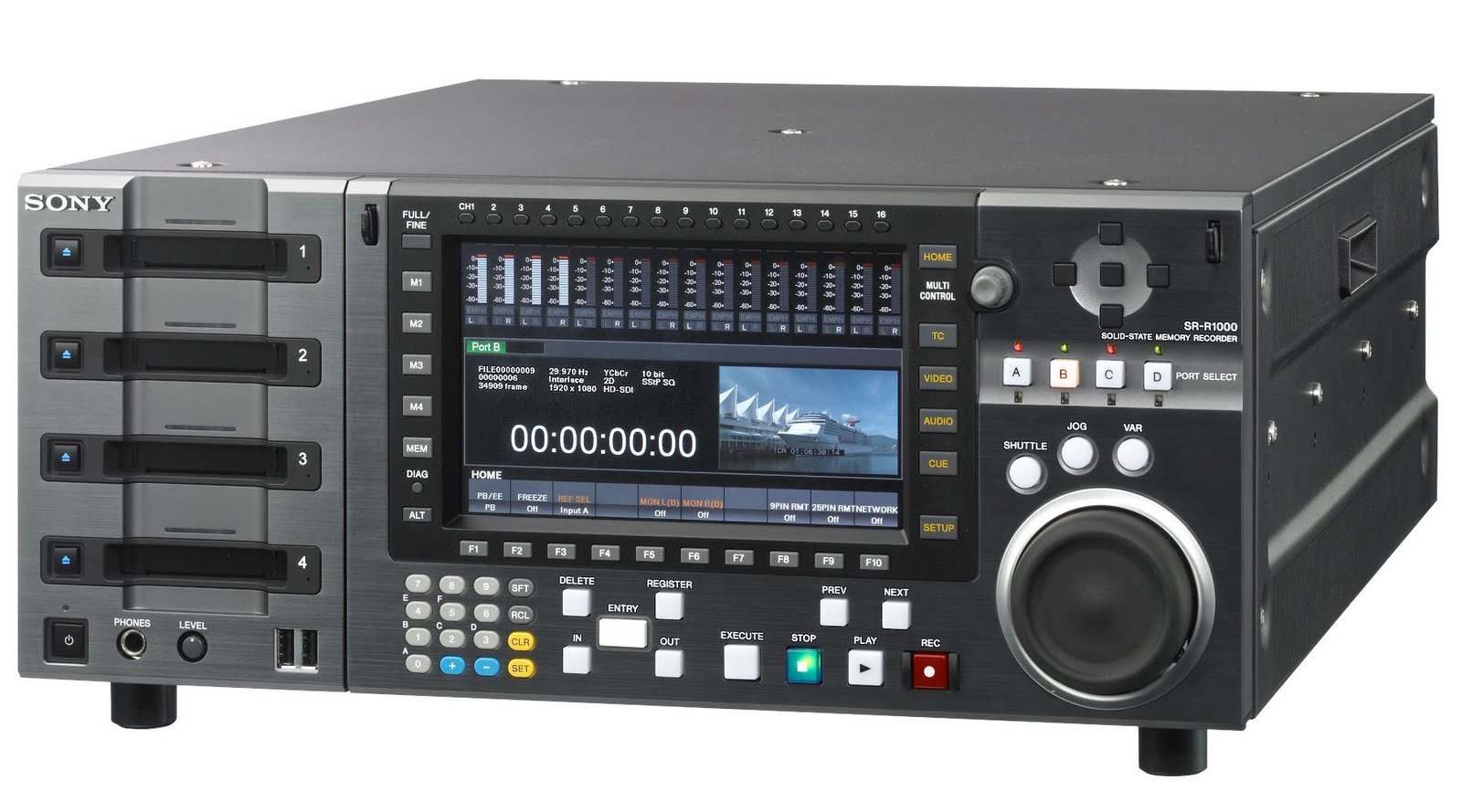 La unidad SR-R1000 es un sistema de almacenamiento de muy alta velocidad de nueva generación ideal para una gran variedad de aplicaciones de directo, broadcast y posproducción, como la grabación de material ISO multicámara, alimentación de clips con reproducción instantánea, ingesta múltiple de alta velocidad, almacenamiento en memoria caché y mucho más.