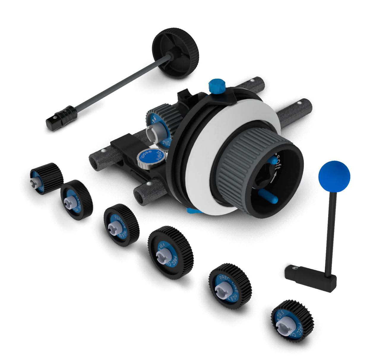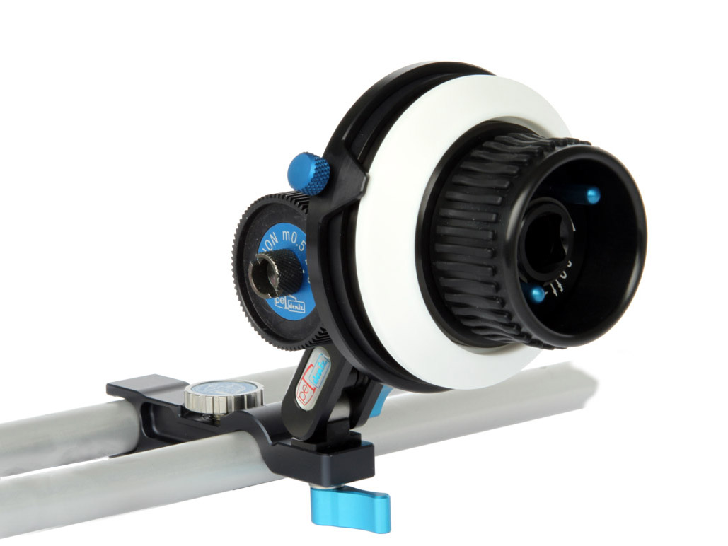 Mando de foco DENZ MINI: Sistema de enfoque portátil y removible, fácil de instalar en barras de 15 mm, ideal para precisión en filmaciones profesionales.