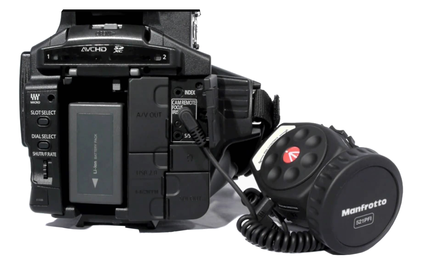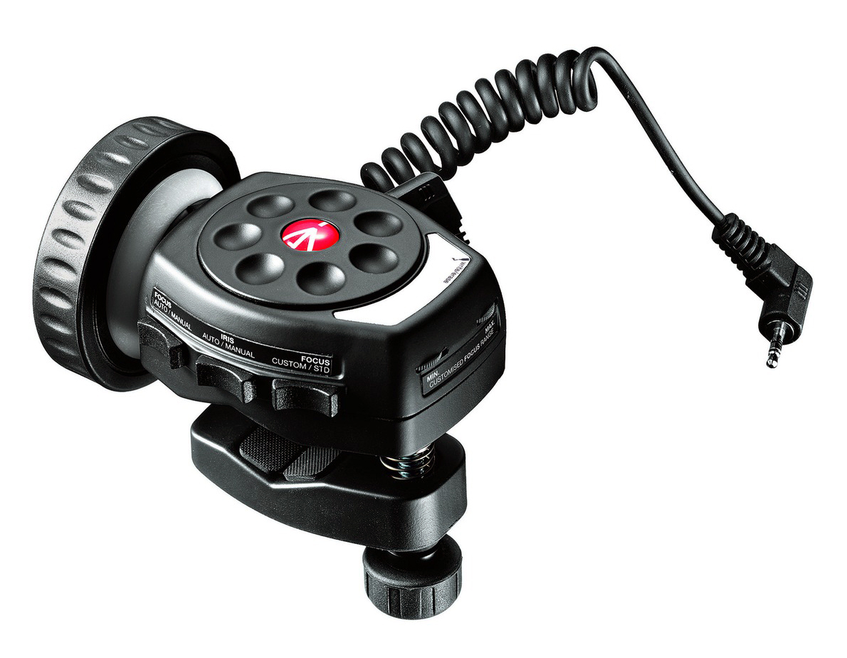 Mando de foco MANFROTTO 521PFI: Control de foco e iris para cámaras Panasonic, ideal para ajustes precisos y profesionales en tus grabaciones.