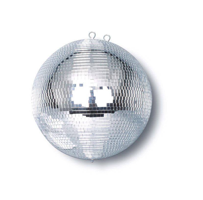 Bola de discoteca mediana de 40 cm de diámetro con espejos clásicos, ideal para crear efectos visuales en fiestas y eventos.