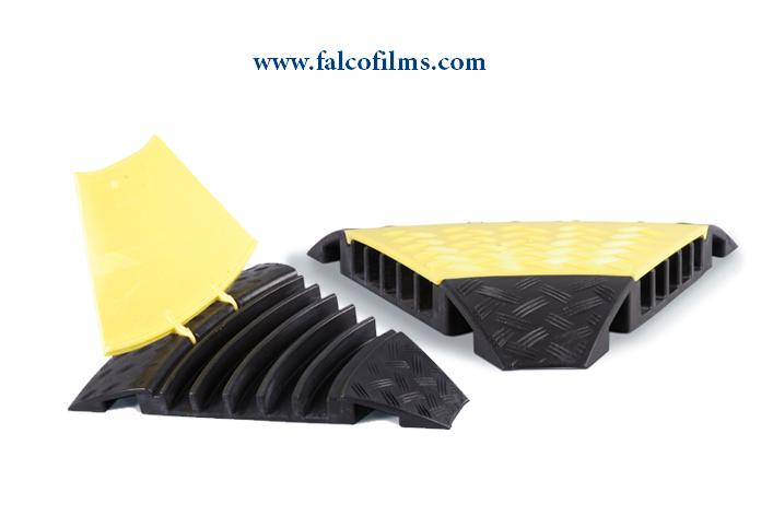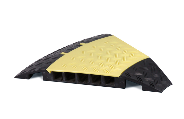 Pasacables curvo 5V de poliuretano de alta densidad, soporta hasta 5000 Kg, con 5 conductos y textura antideslizante, ideal para máxima protección y durabilidad.