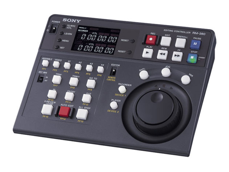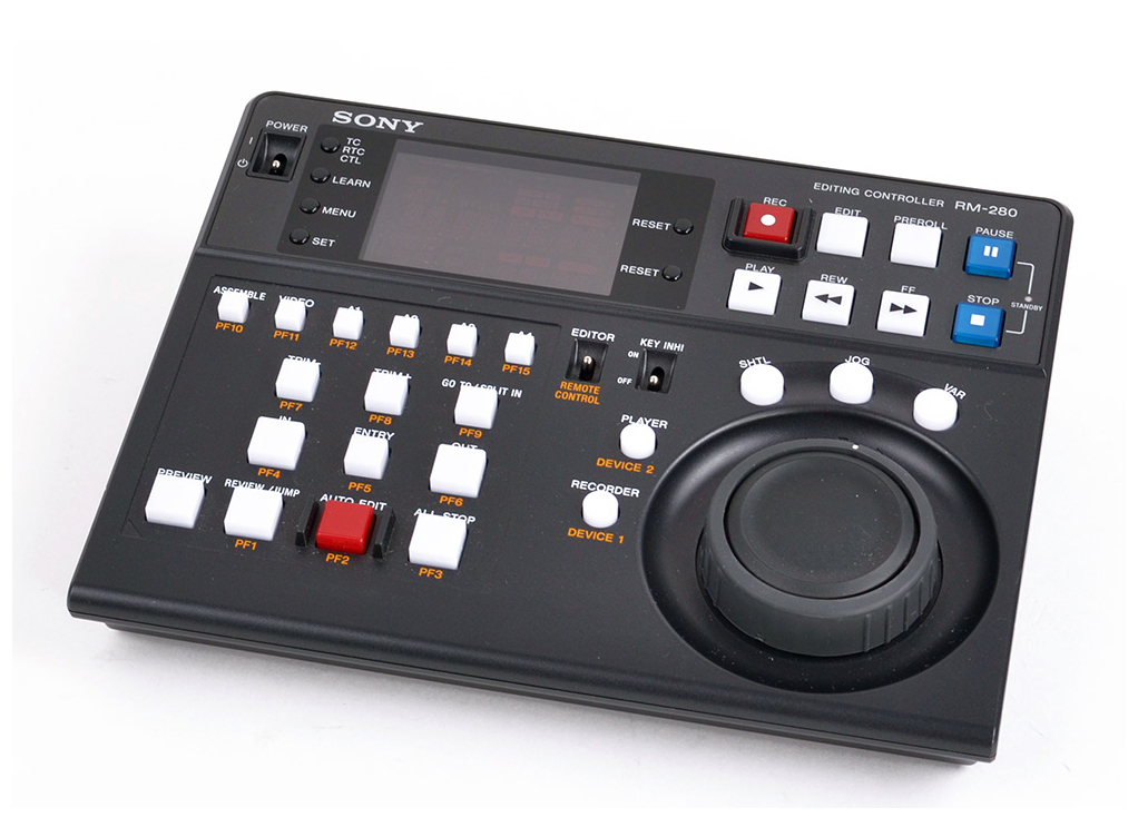 Variedad de botones de edición tales como “In and Out -point entry”, “+ and - Trim”, “Auto Edit”, “Preview/Reveiw”, “Go To”, “All Stop”