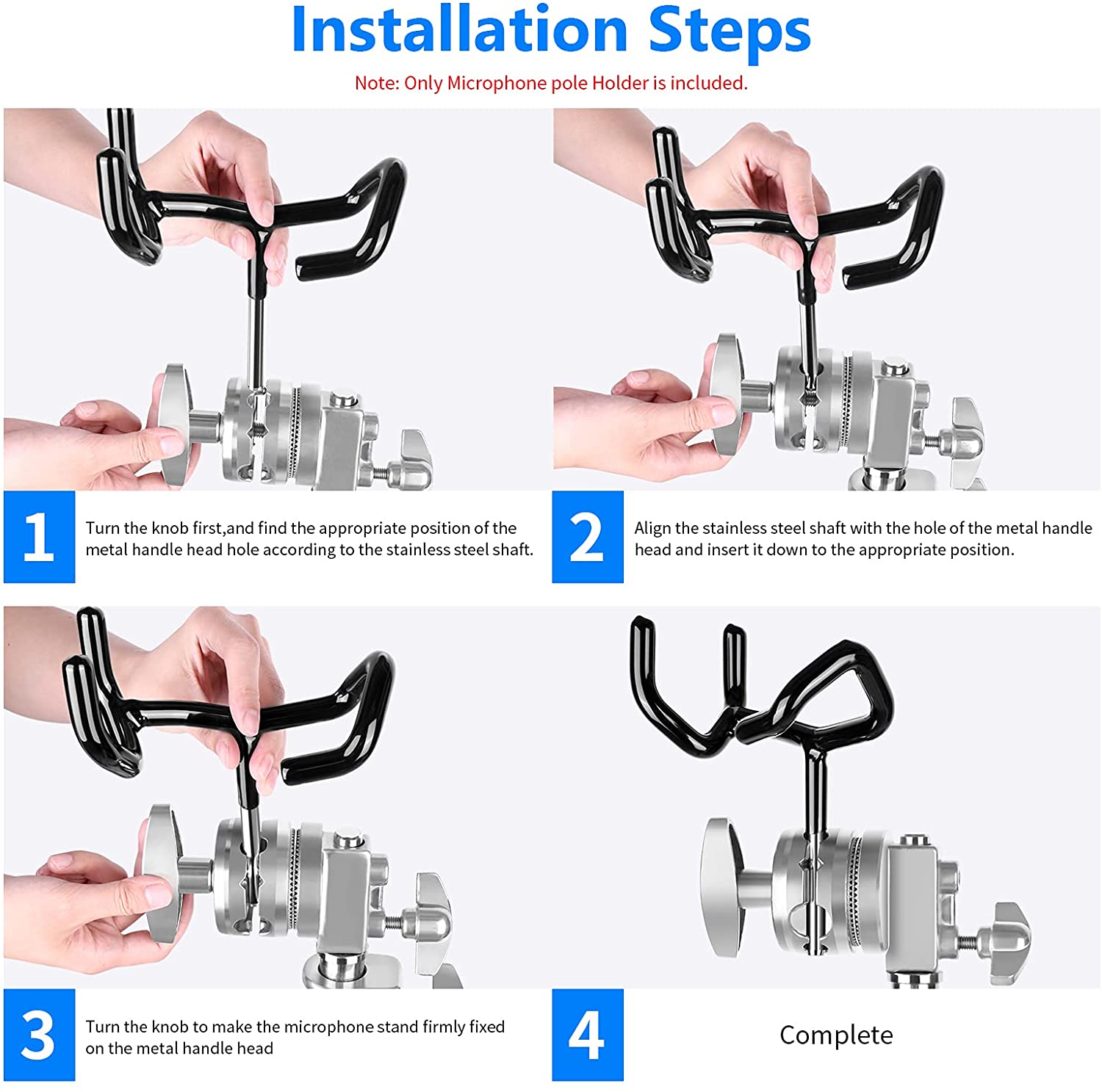Soporte de acero para colocar la pértiga del micrófo en un pie de iluminación.