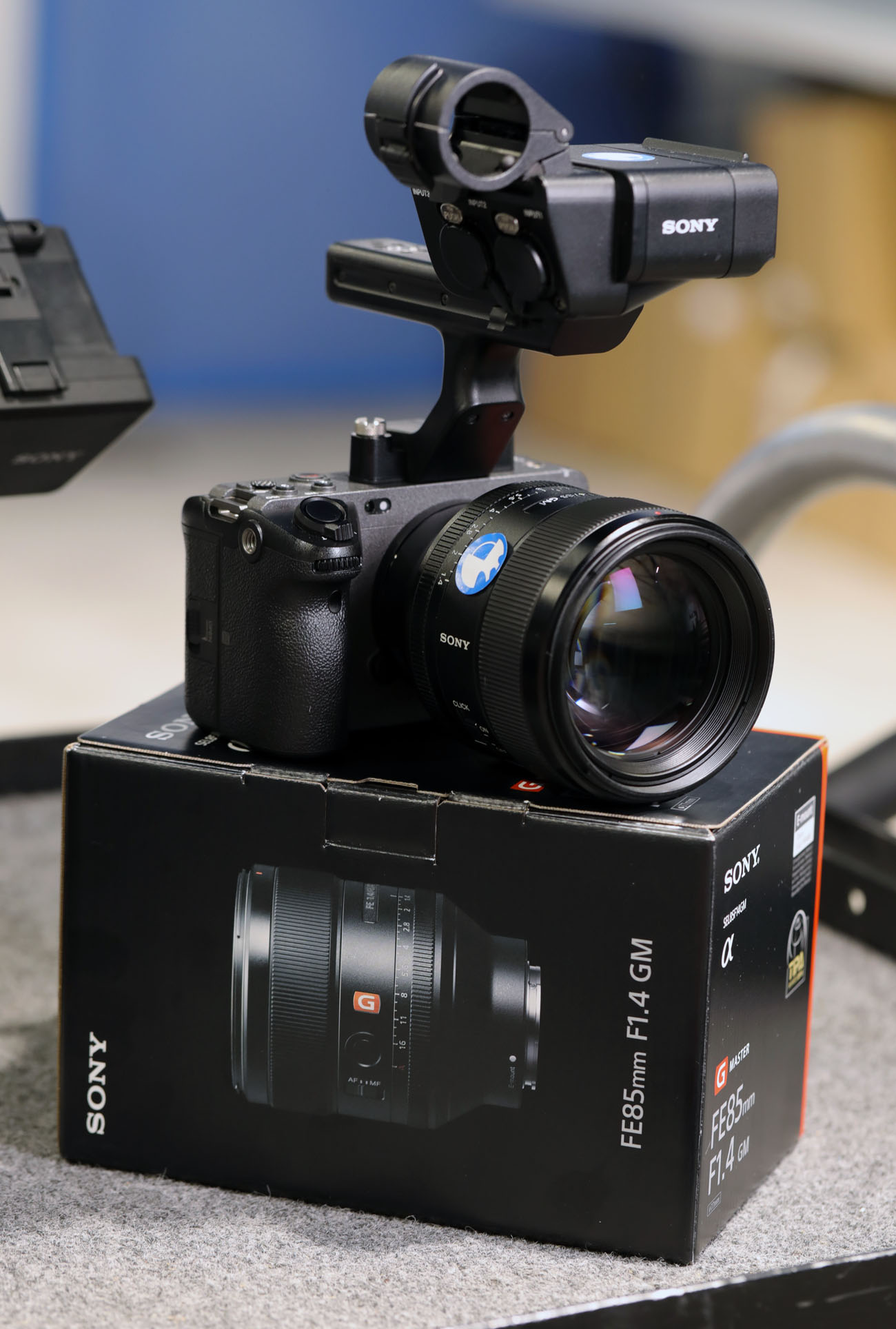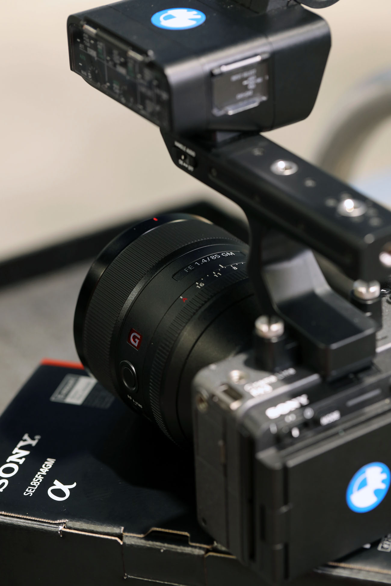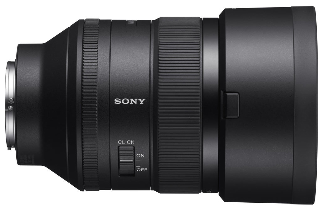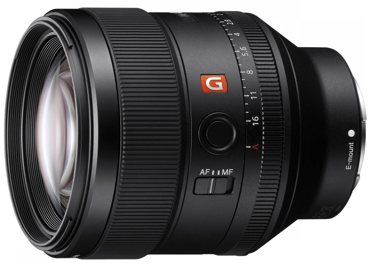 Lente Sony AF FE 85mm f/1.4 GM con montura E, ideal para formato completo, apertura máxima f/1.4, 11 hojas de apertura y diseño de alta calidad óptica.