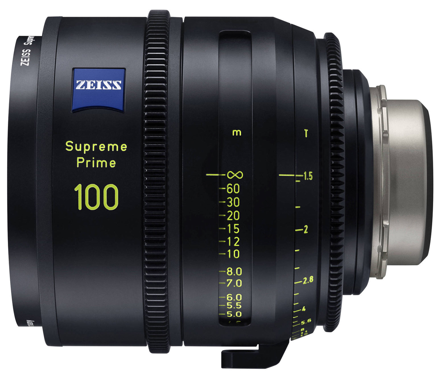 Lente ZEISS SUPREME PRIME 100/T1.5: Montura PL, apertura T1.5, M.O.D. 0,84m, diámetro 95mm, peso 1,42kg. Alta calidad y rendimiento profesional.