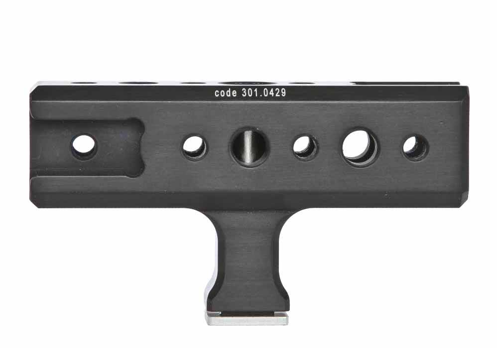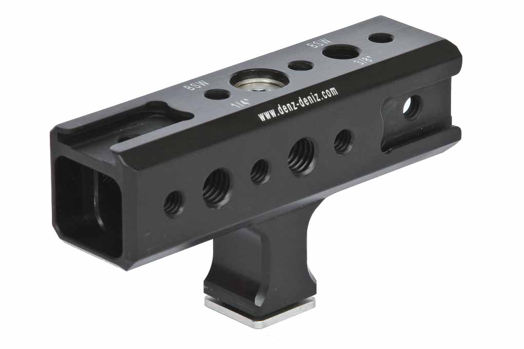 Adaptador DENZ multiusos: Montaje en zapata estándar con roscas de 3/8", 1/4", 5/32" y laterales, ideal para micro y antorcha.