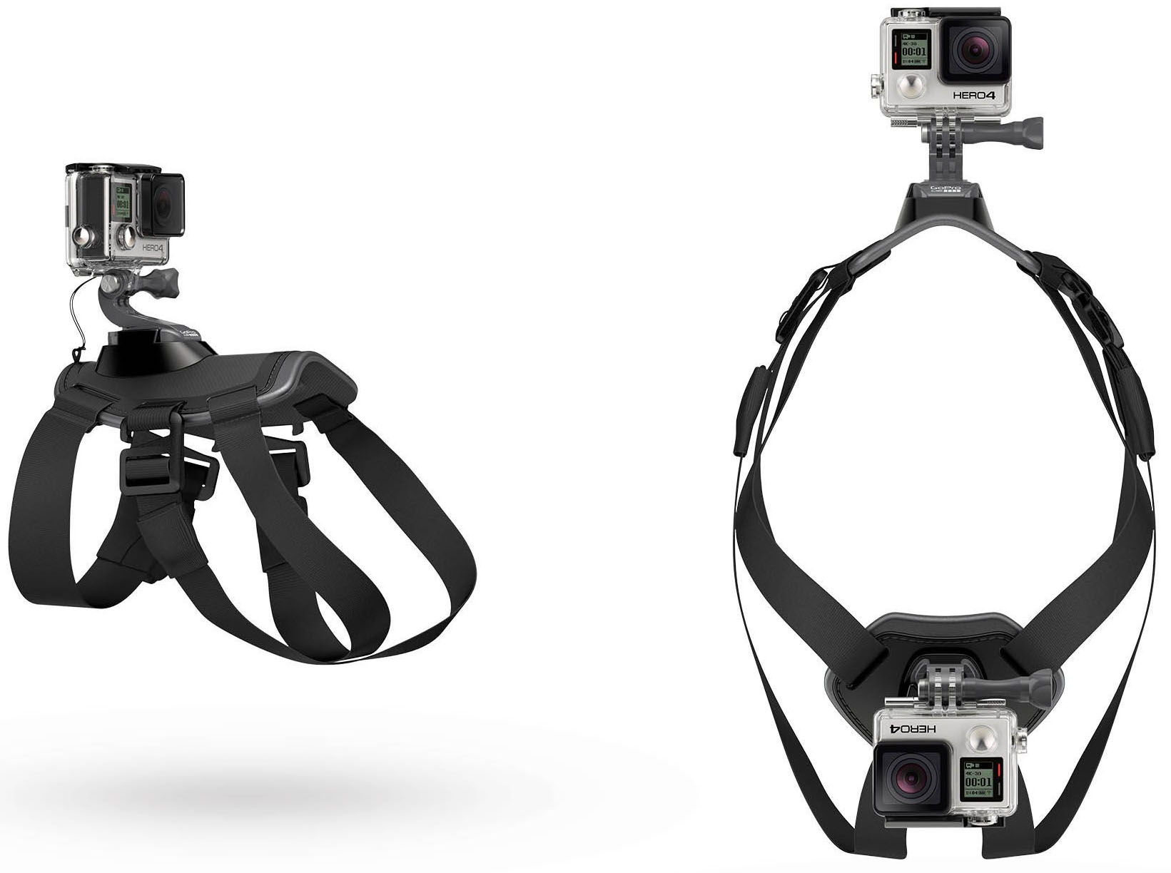 Este arnés dispone de dos puntos de montaje para una gran variedad de perspectivas: en el pecho, para verlo masticando huesos, excavando y ver las acciones de las patas delanteras, y en la espalda, para capturar por encima de la cabeza mientras corre, salta, busca y mucho más.
