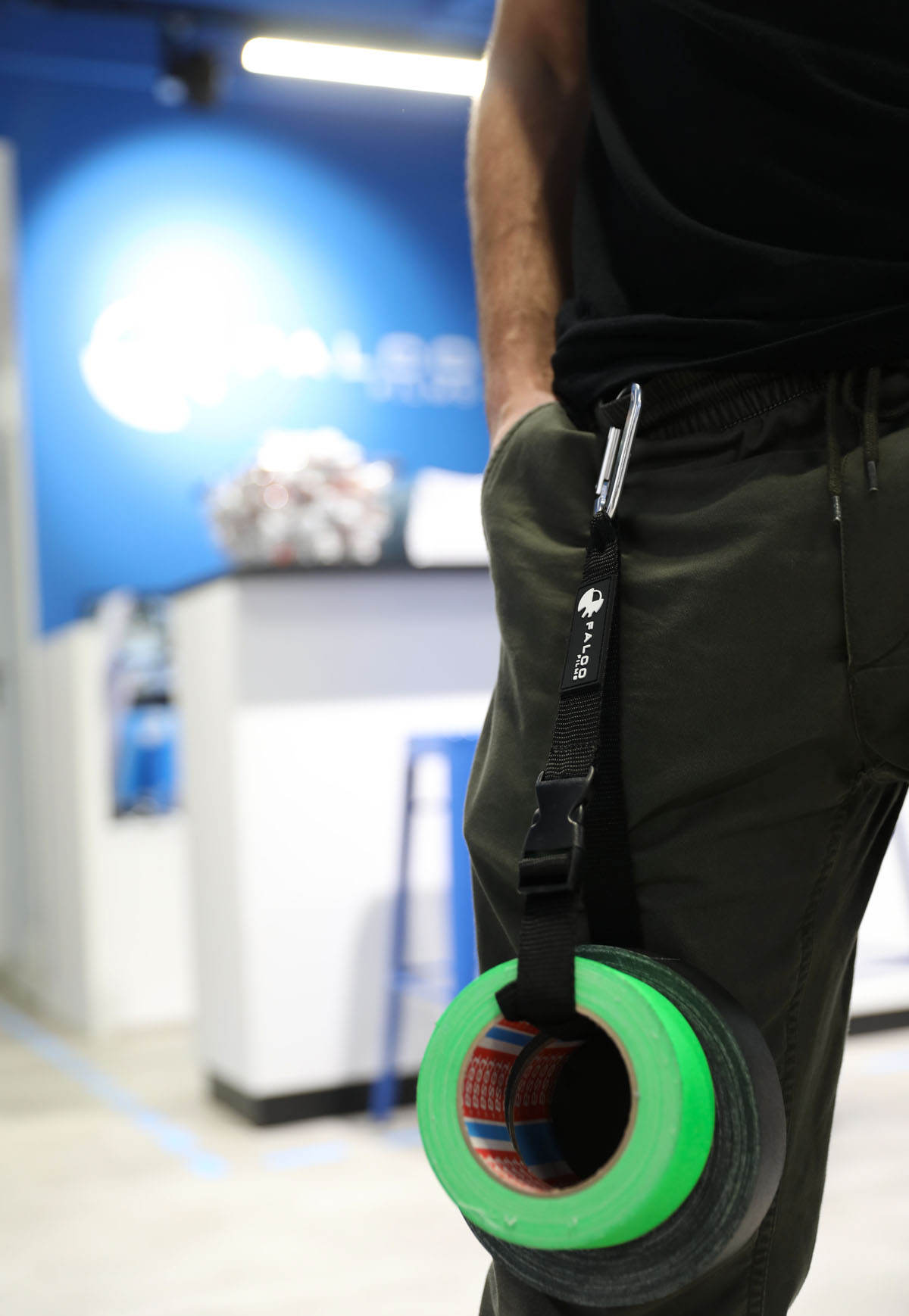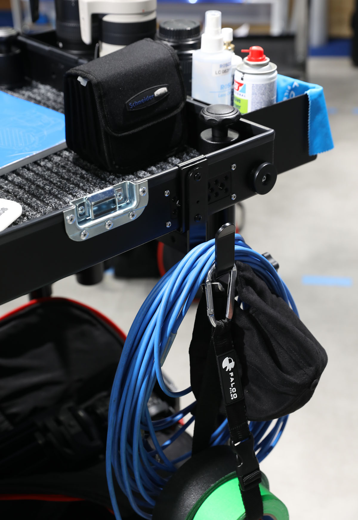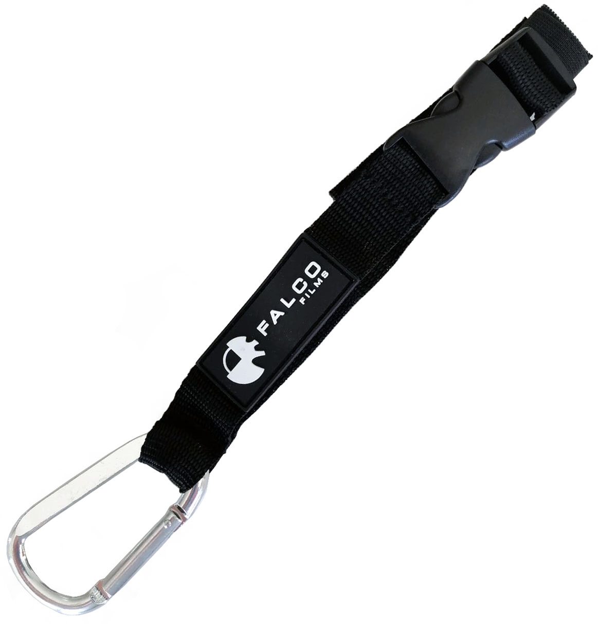 Mosquetón Falco Films: cómodo para cintas de cámara y cinta americana, clip seguro de liberación instantánea y broche ajustable para variar la longitud.