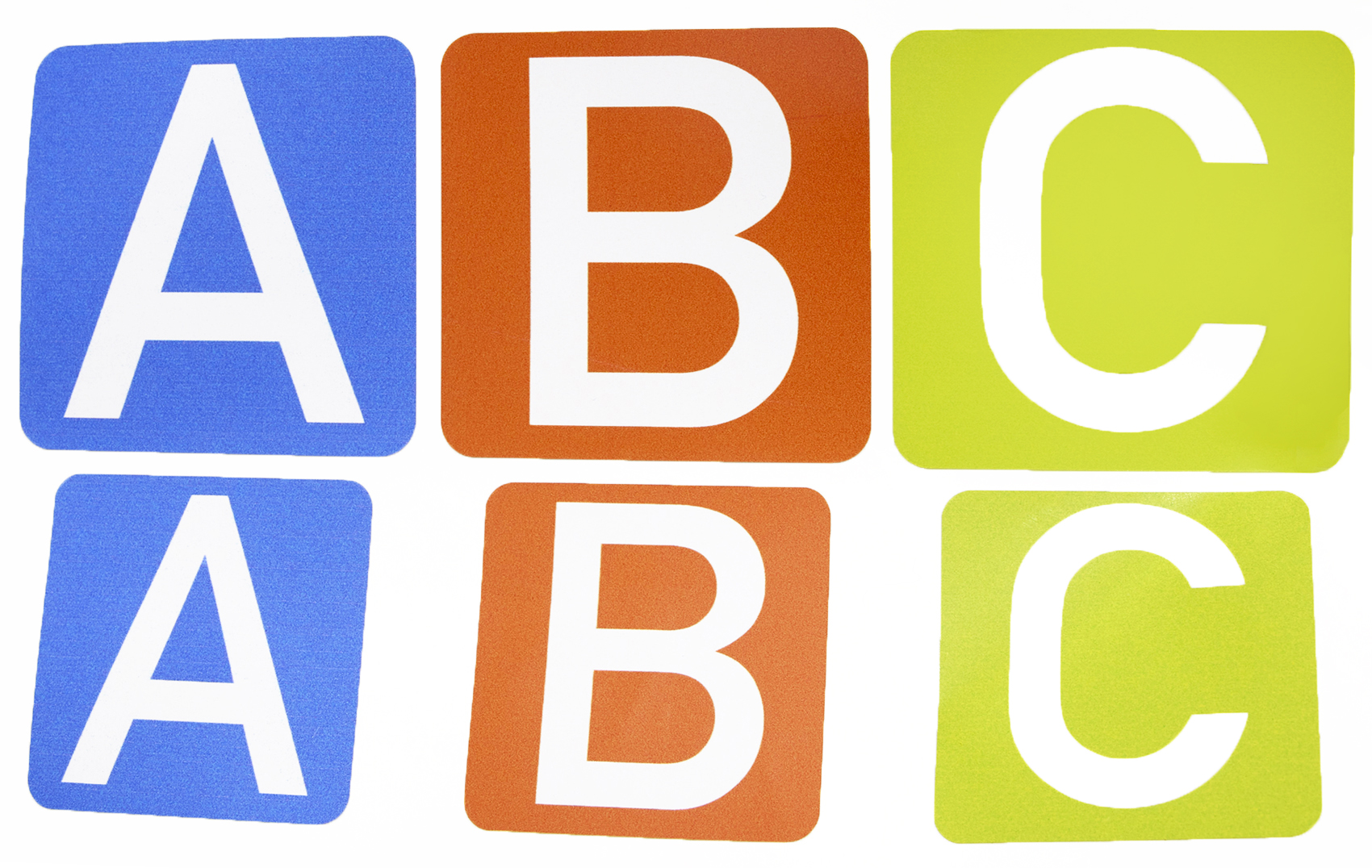 Letras: A , B , C en 3 colores diferentes.