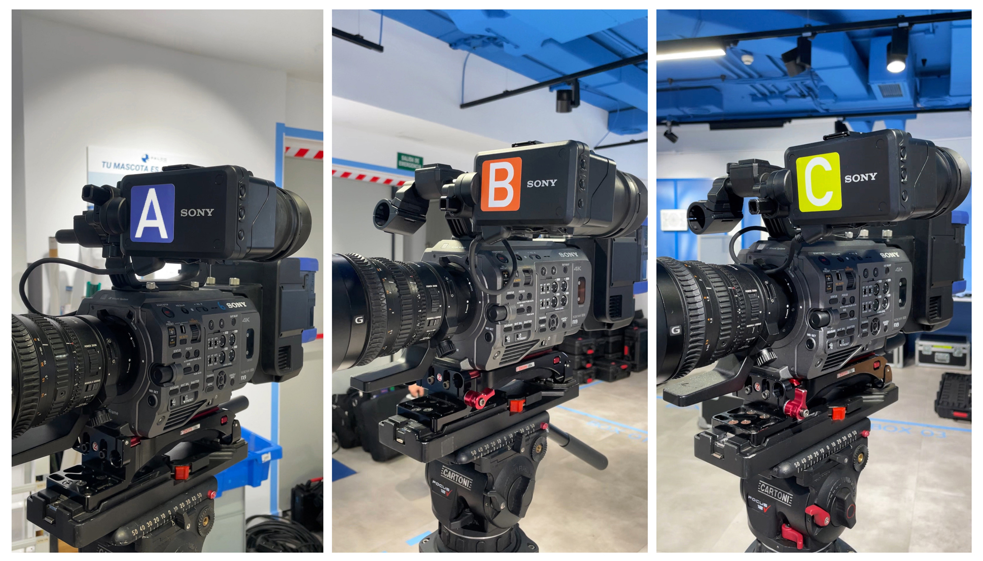 Pegatinas para marcar o indicar 3 diferentes equipos de cámara.