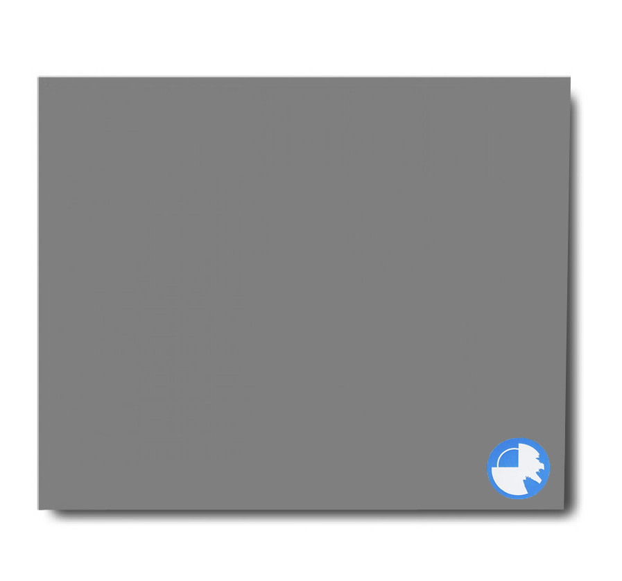 Carta gris 20x25cm, 2mm de grosor, una cara 18% reflectancia gris neutro y otra 90% blanco, mate, ideal para fotografía y diseño gráfico.