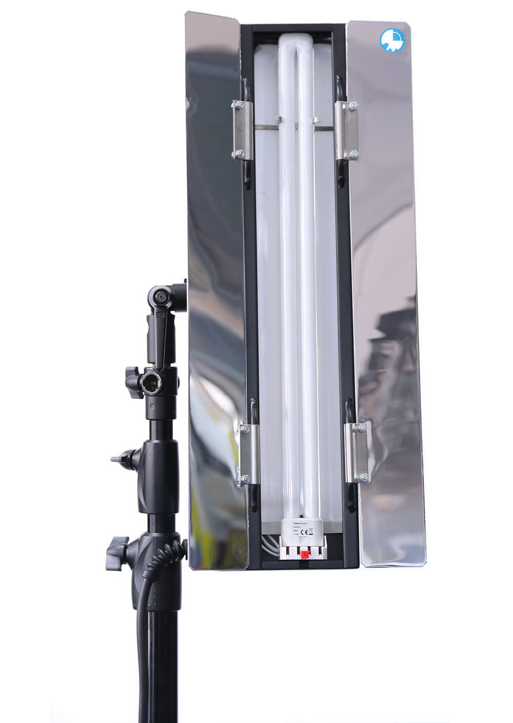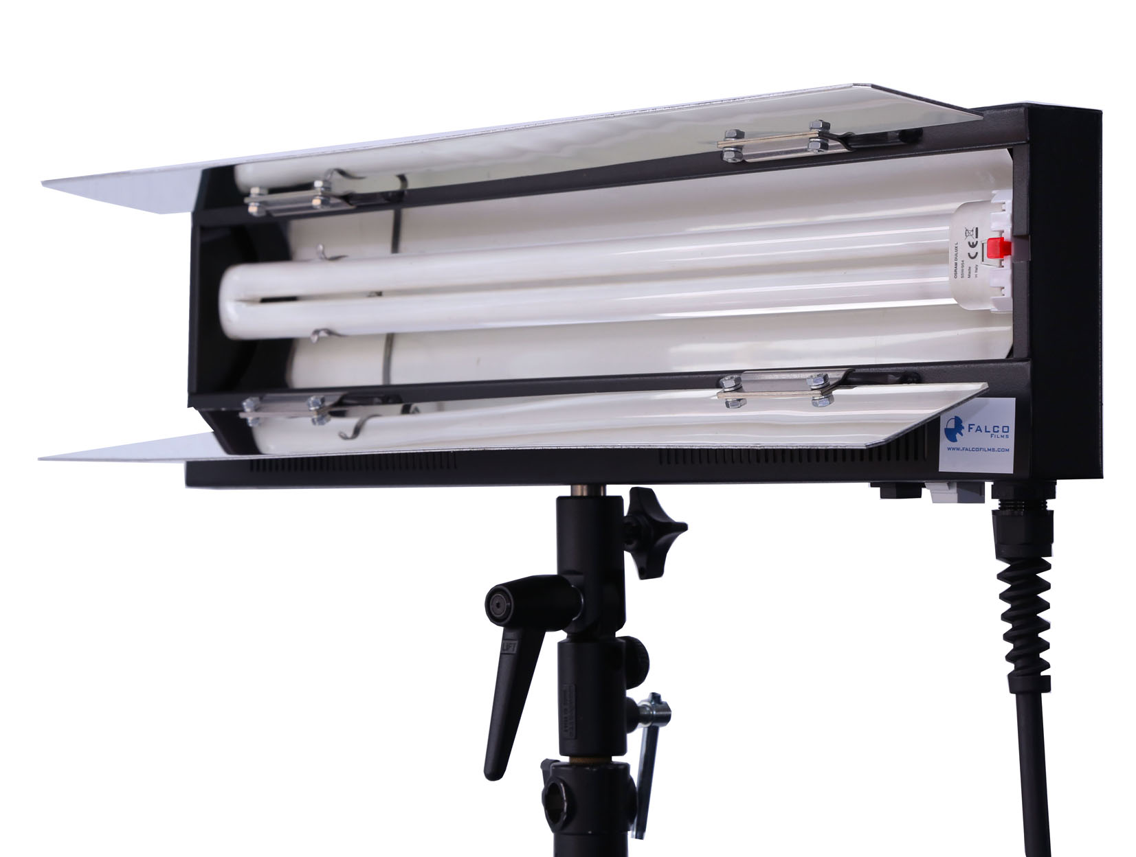 Panel de 4 tubos PRIMELUX: luz fría 5400K con lámparas fluorescentes, intensidad ajustable, rendimiento cromático excelente, incluye tela difusora y cable; disponible en vertical y horizontal.