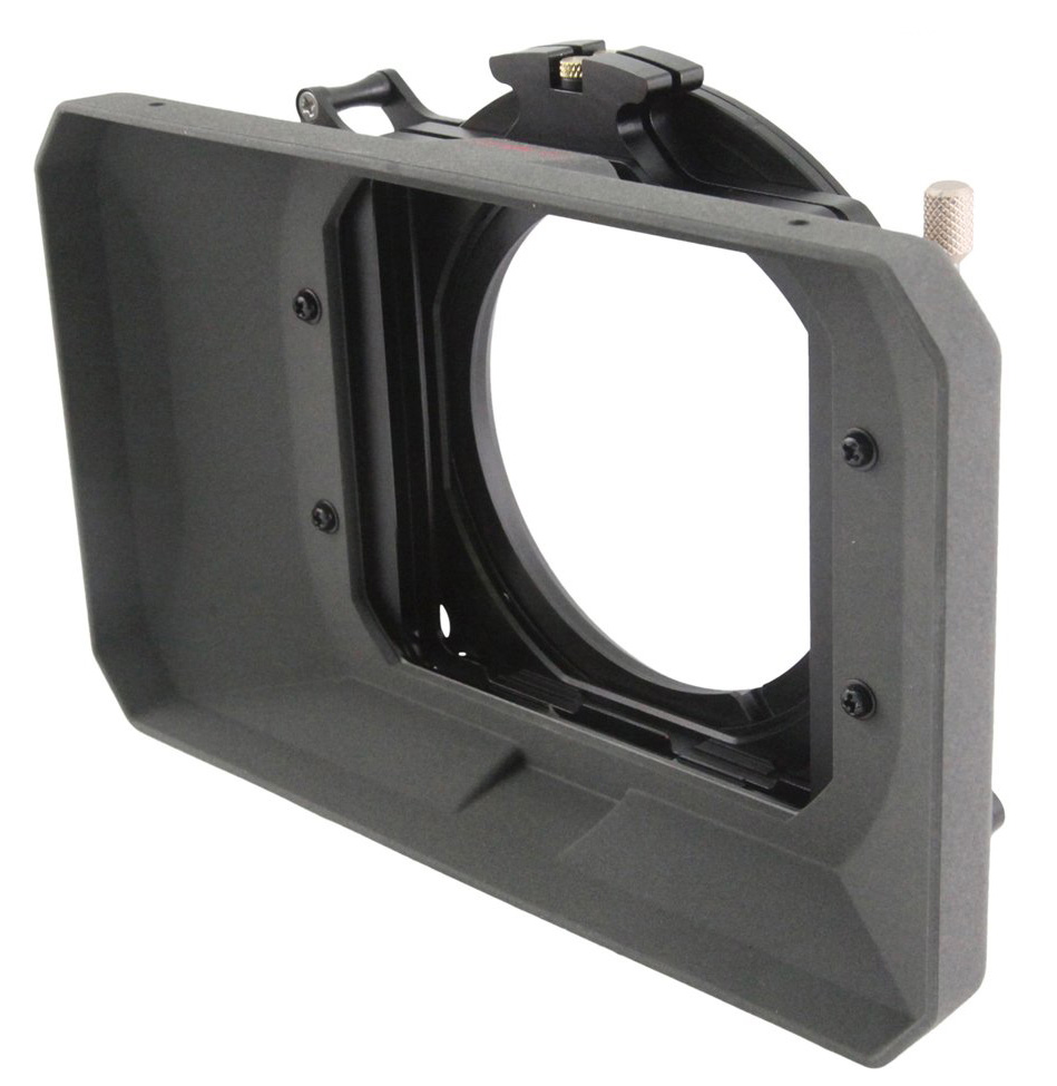 Portafiltros CLIP-ON GENUS GWMC: Matte box 4x4 compacto y ligero, se instala directamente en la lente, eliminando la necesidad de barras y base.