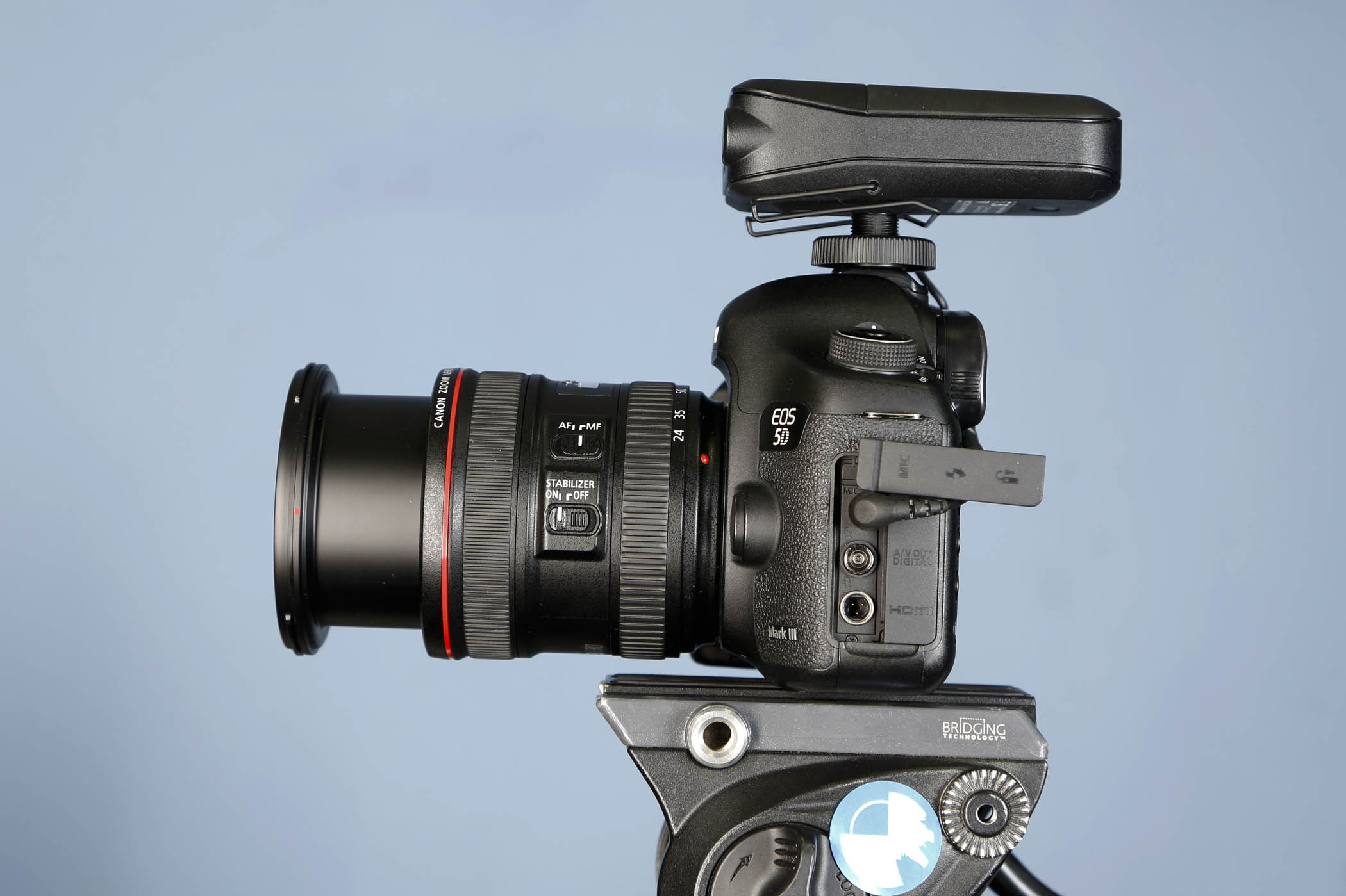 El receptor (RX-CAM) cuenta con una pantalla OLED con información sobre el nivel, estado de la batería (receptor y transmisor), silencio y selección de canales.