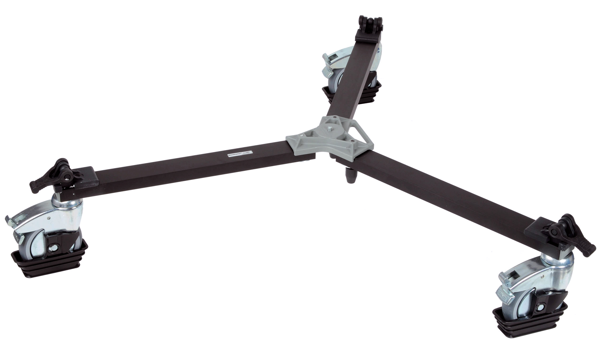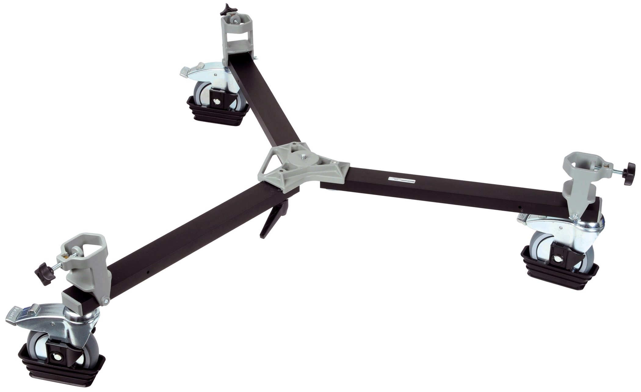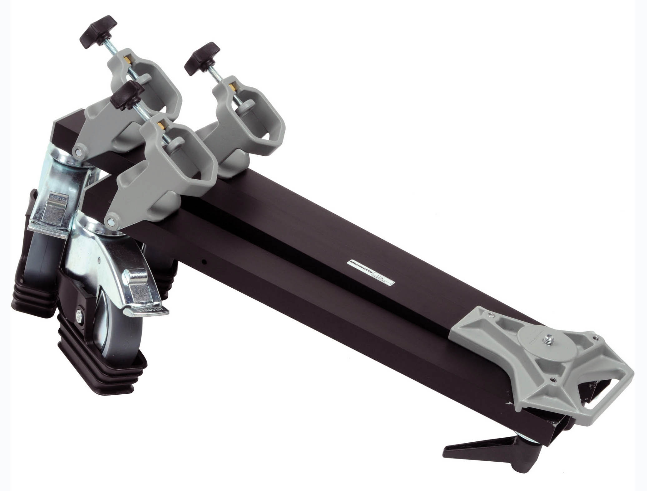 Cangrejo DOLLY MANFROTTO 114: plegable, con bloqueo en tres ruedas, capacidad de carga 60kg, aluminio, 112cm diámetro, 21cm altura, 8kg, negro mate.