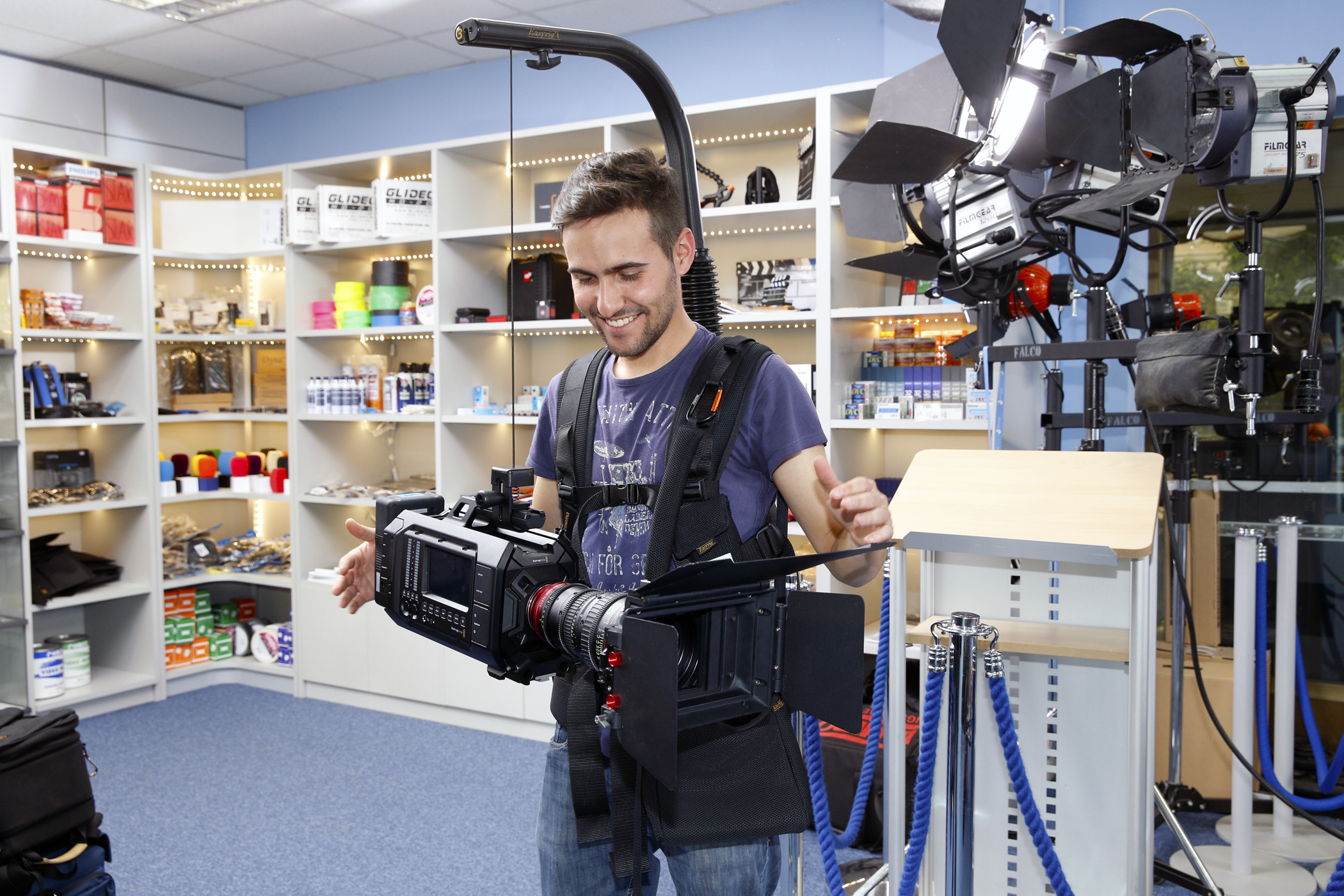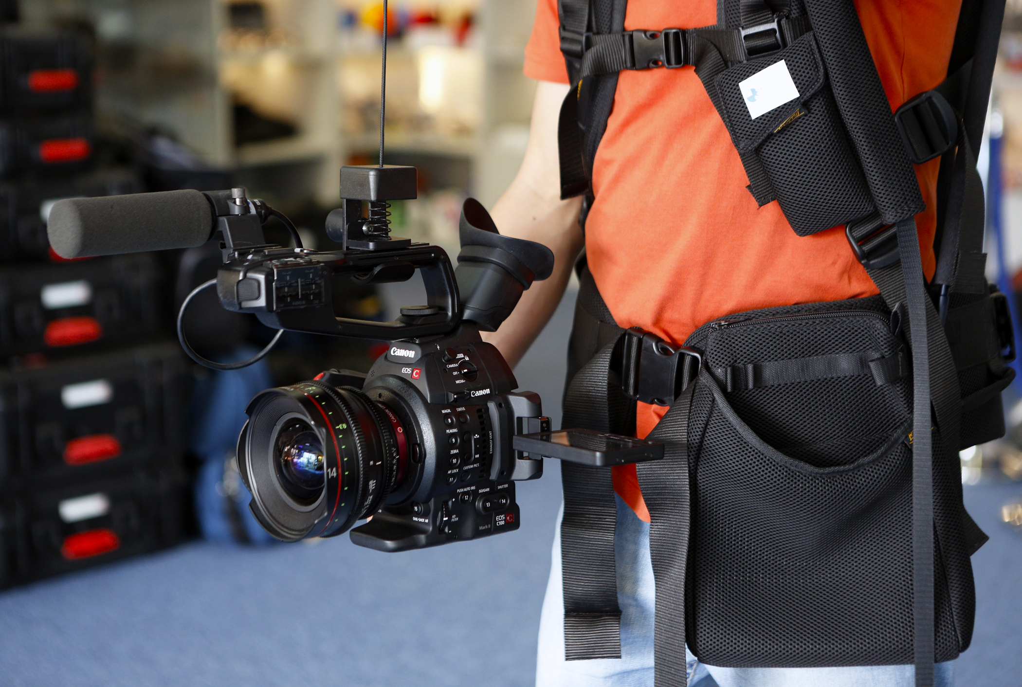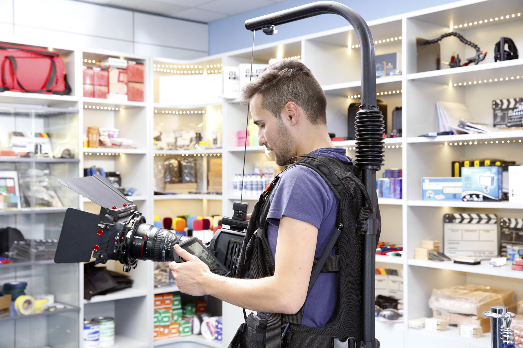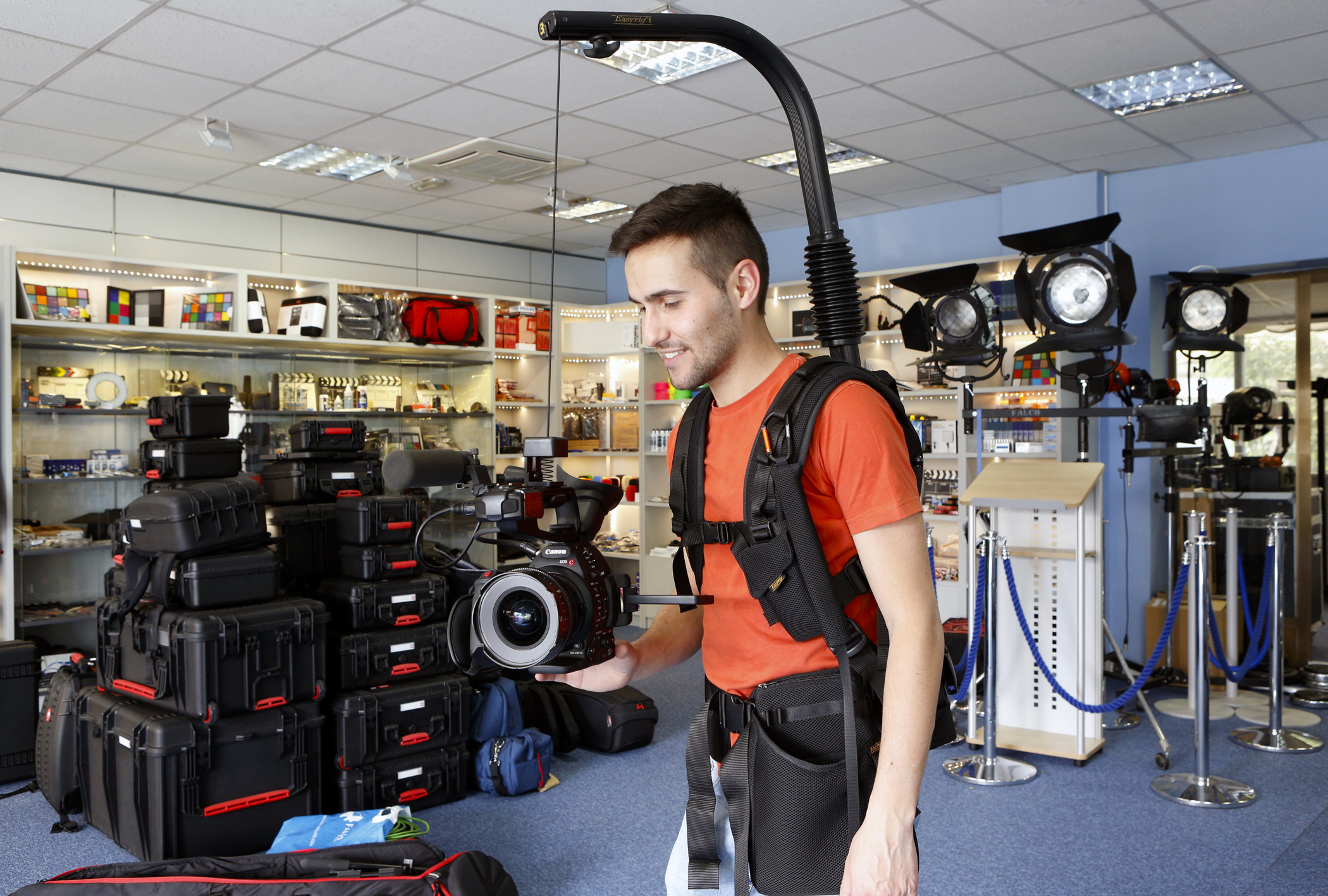 Chaleco para cámara al hombro, que libera del peso de la cámara dando libertad de movimiento.