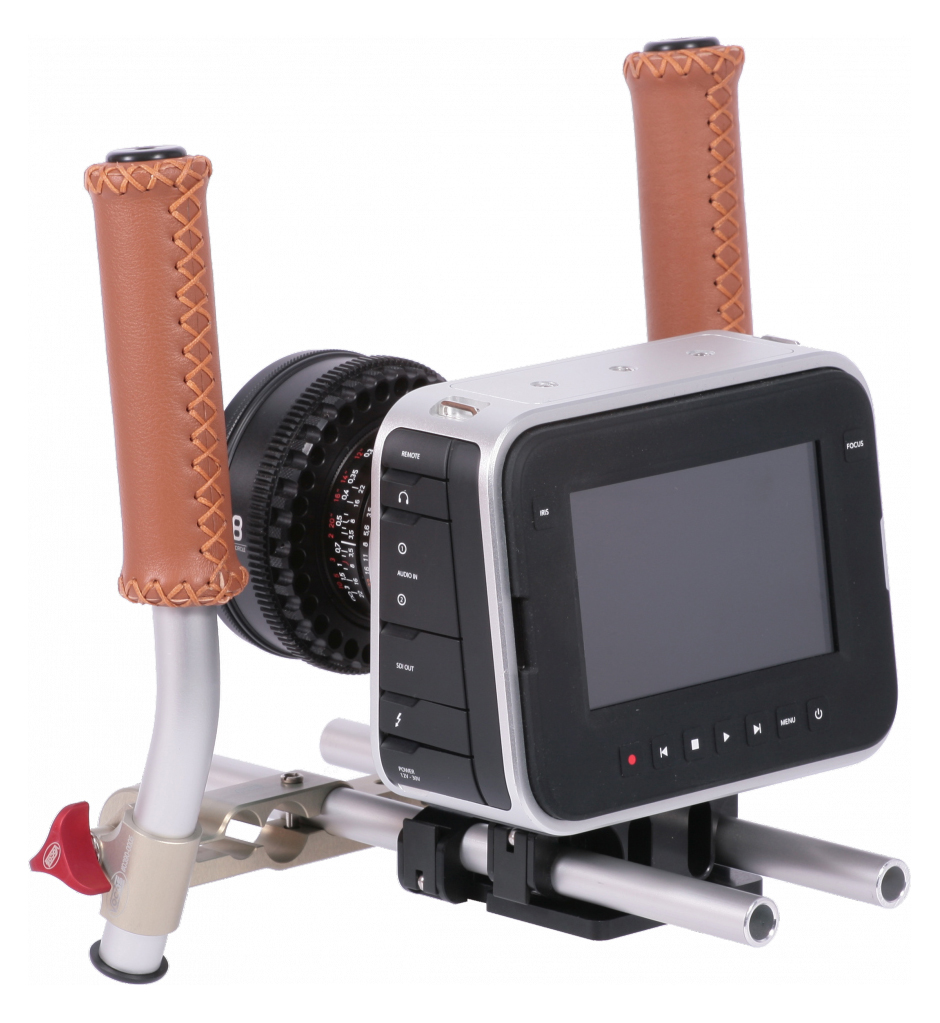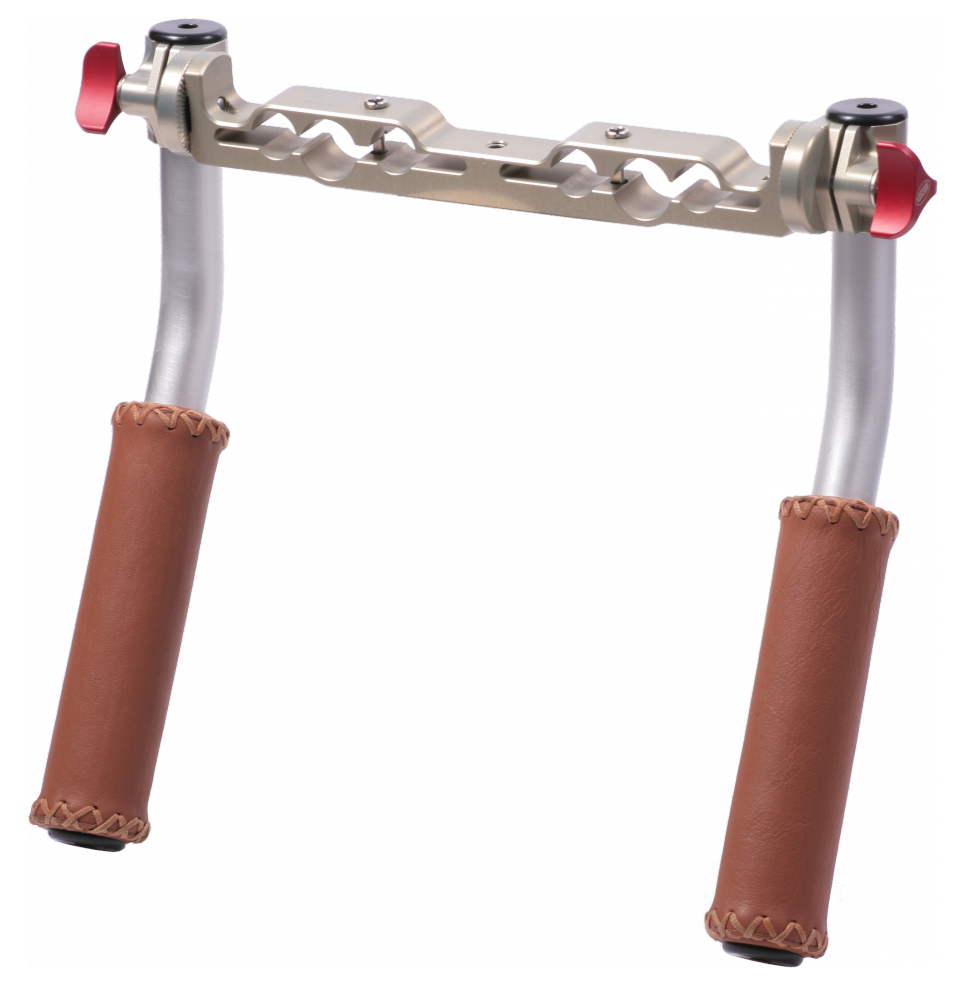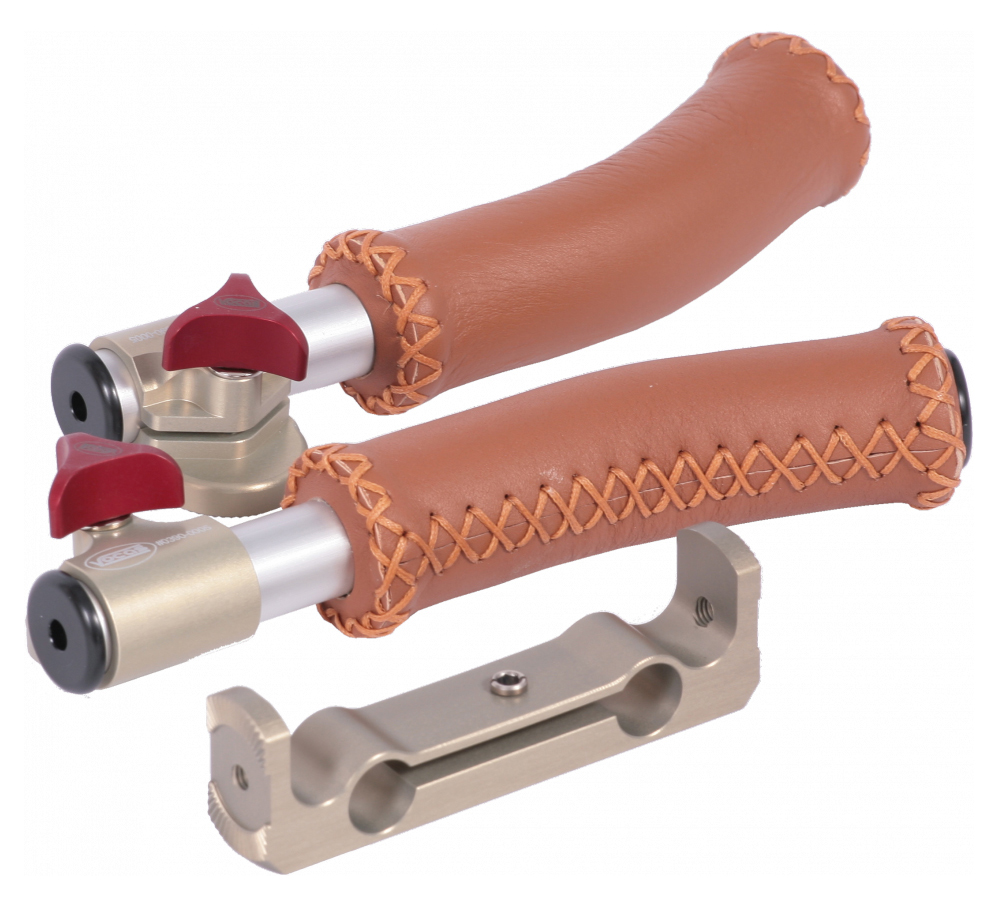 Mangos VOCAS HANDGRIP: juego de 2 mangos con empuñaduras de piel, compatible con barras de 15mm y 19mm, ideal para estabilización profesional.