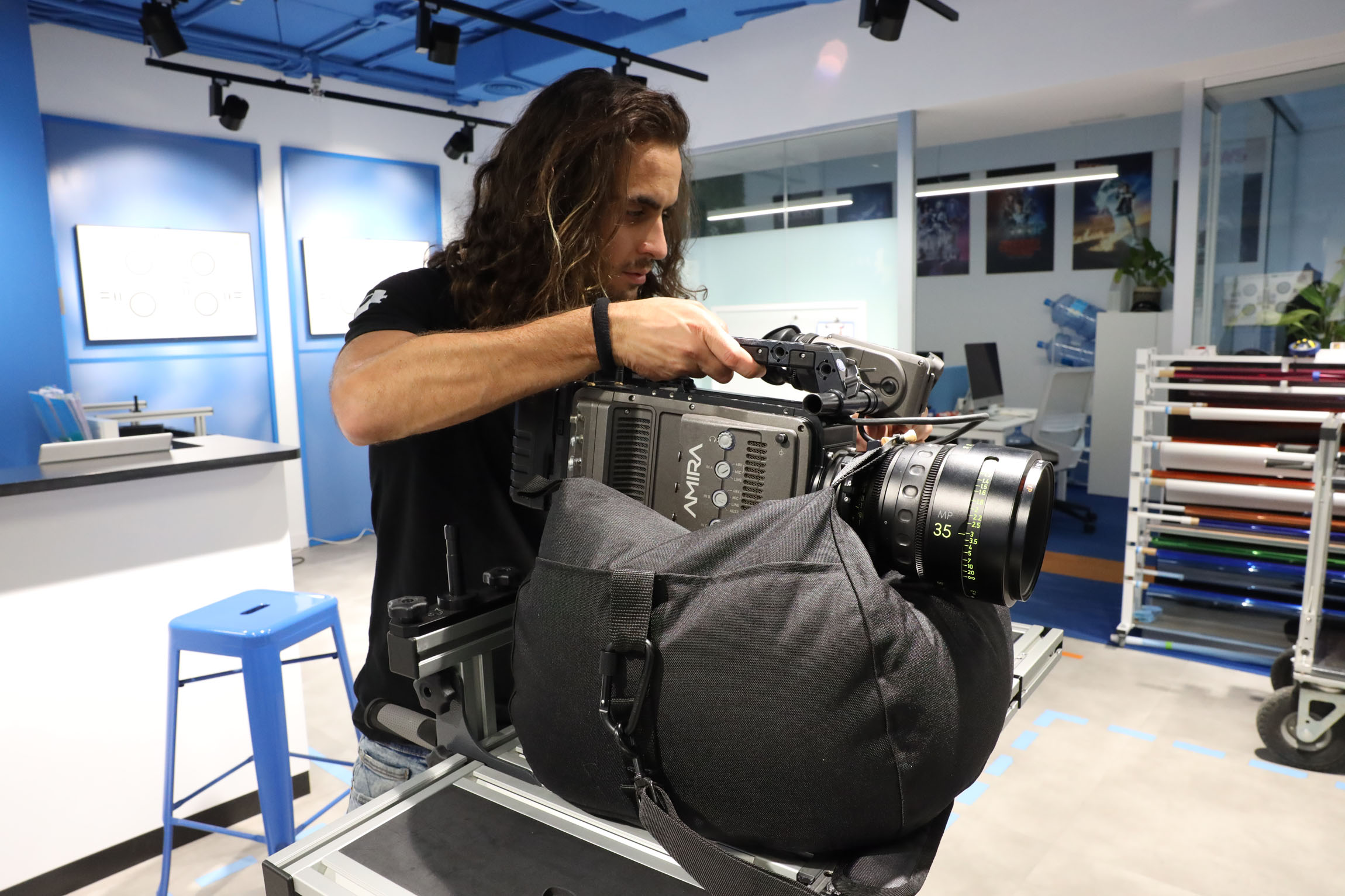 Bolsa rellena con bolitas de foam y que funciona como soporte estabilizador de cámara.