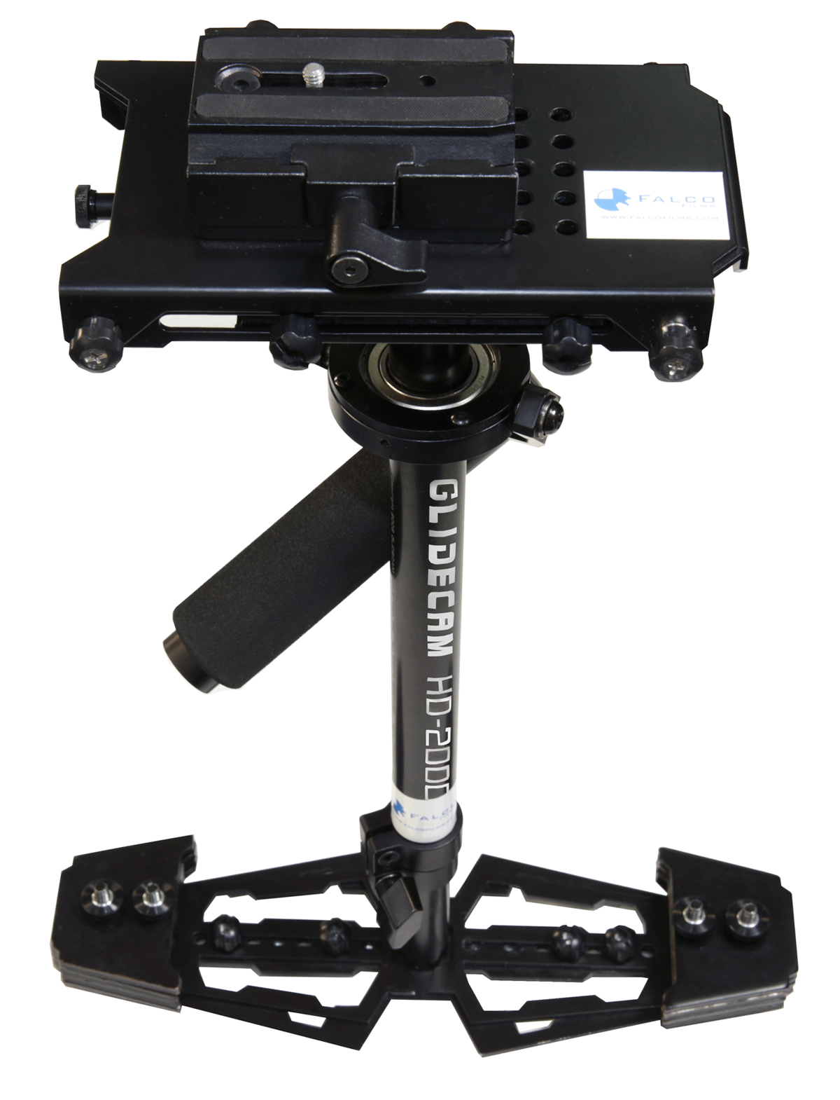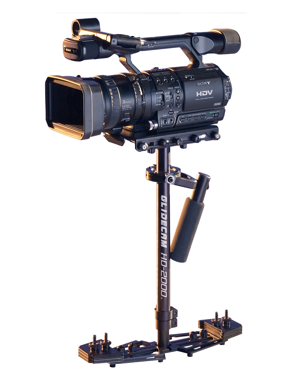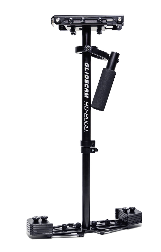 Estabilizador de mano GLIDECAM HD2000 para cámaras DSLR de 1 a 3 kg, con ajustes precisos, gimbal de tres ejes y empuñadura confortable.