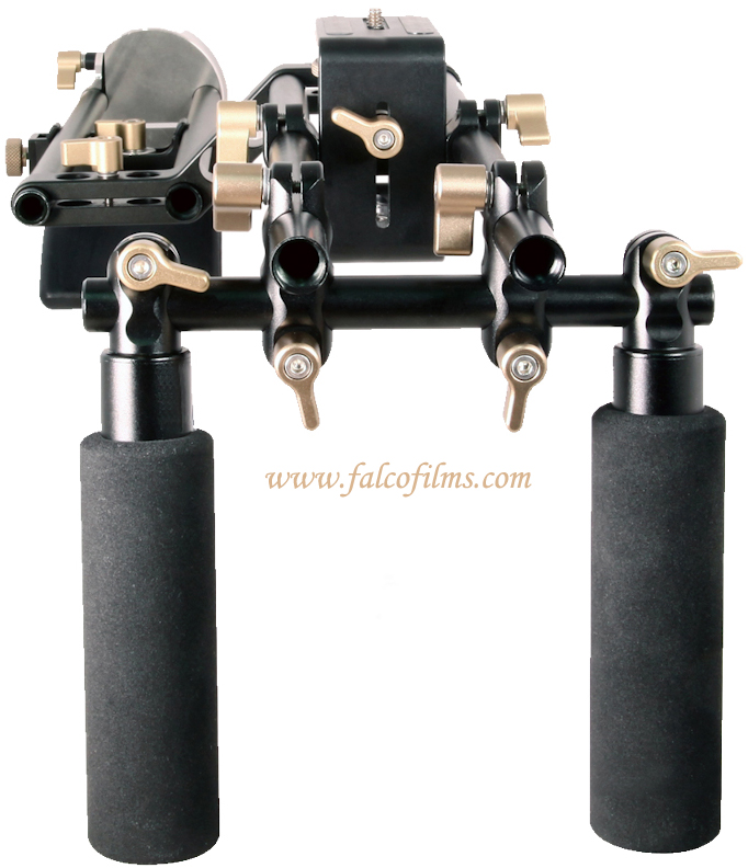 Soporte estabilizador de cámara al hombro Es un sistema modular que admite varias configuraciones y ajustes al gusto del operador, tanto si es zurdo como diestro. Dispone de 4 barras de 15 cm donde poder colocar el mando de foco, un monitor, el portafiltros...