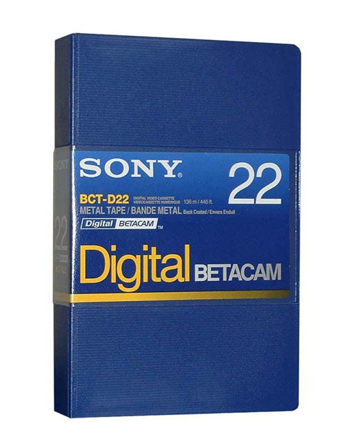 Cinta Sony BCT-D22, 22 minutos de grabación en formato Betacam Digital, ideal para uso profesional en producción audiovisual.