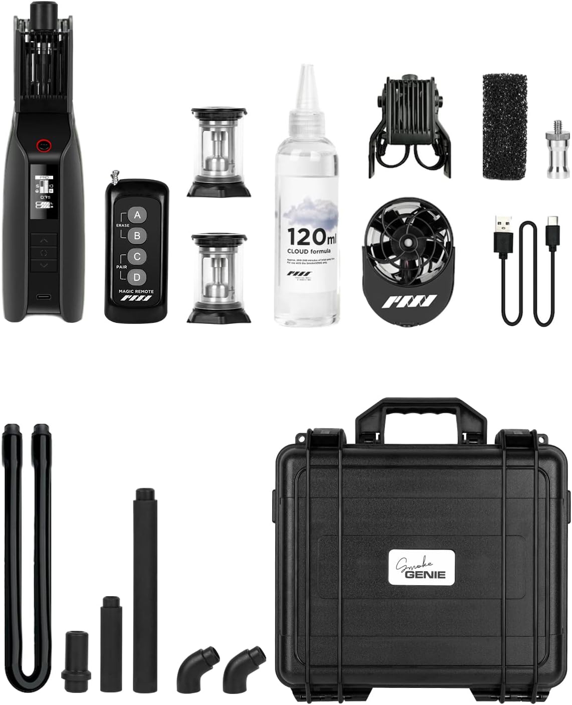 SMOKEGENIE es perfecto para fotografías creativas, producciones cinematográficas y actuaciones en las que desea agregar una atmósfera especial con humo o niebla en la habitación.