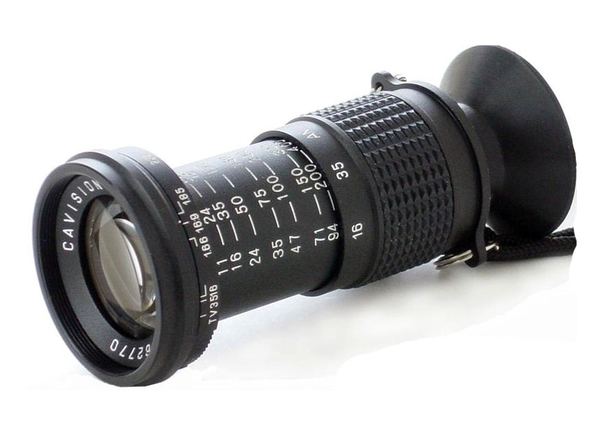 Visor de director CAVISION: telescópico 11x, adaptable de 18 a 200mm en 35mm, ideal para precisión y detalle en la dirección de cine.