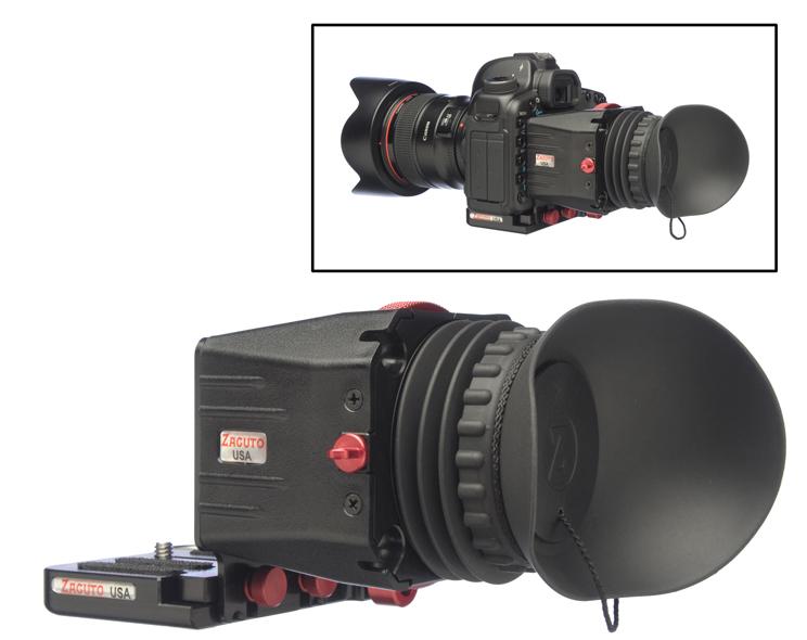 Visor Z-Finder Pro 2.5x: magnificación de 2.5x para cámaras DSLR, lente antivaho, dioptría ajustable, compatible con pantallas LCD de 3", ideal para vídeo.