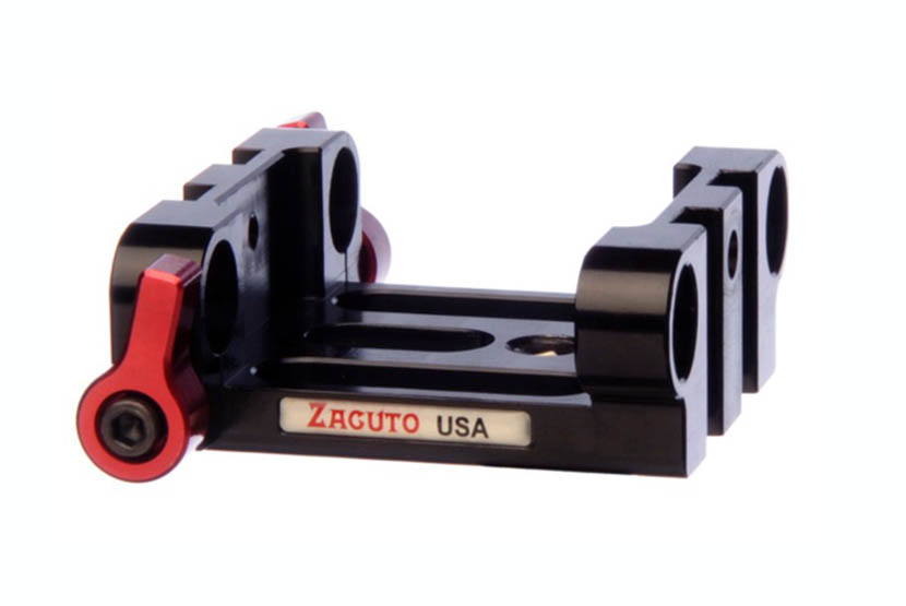 Placa base universal Zacuto Z-Balance para barras de 15mm, ideal para configurar equipos de cámara con precisión y estabilidad profesional.