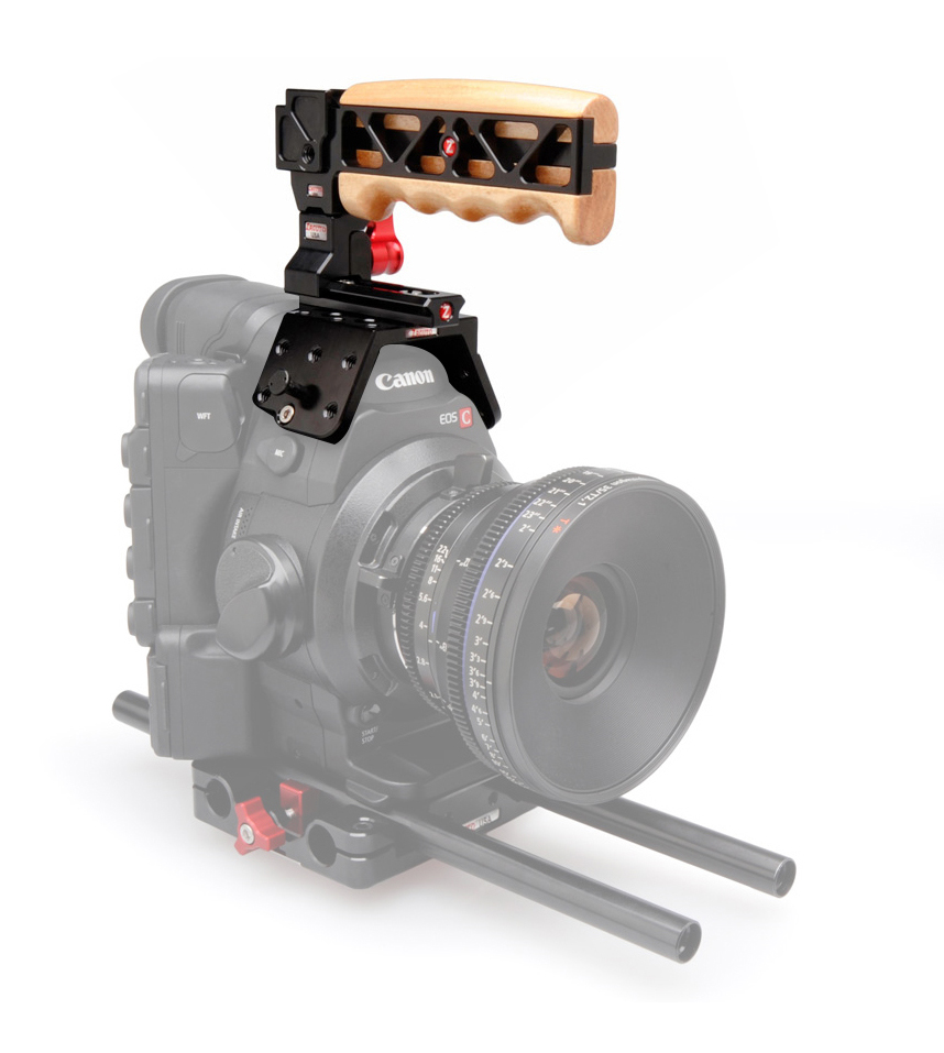 Mango de madera de arce, diseñado para montarse directamente en la parte superior de la CANON EOS C300 o C500 en lugar del asa superior original de CANON.